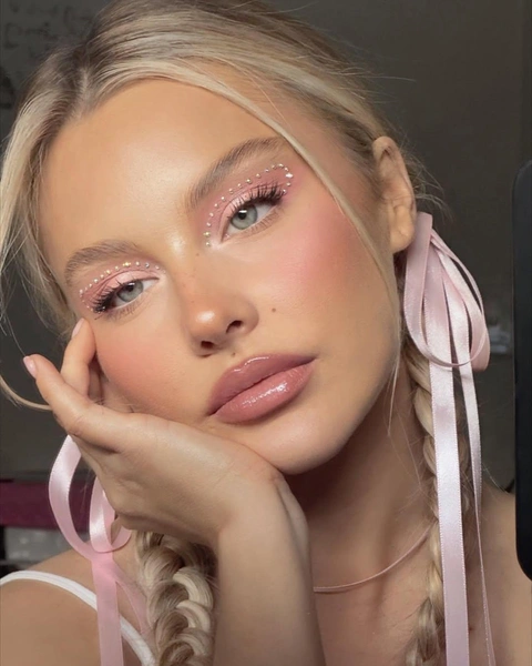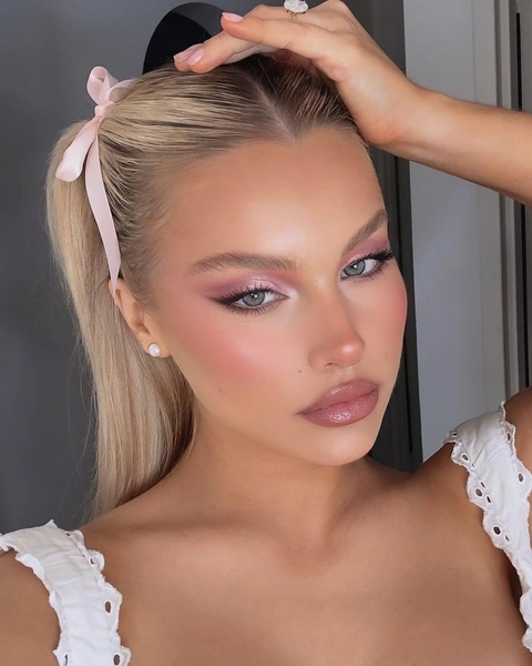 Блеск в макияже — это всегда про изобилие и привлечение внимания. А розовый цвет в нумерологии и фен-шуй связан с привлечением благополучия и позитивной энергии. Нанеси на все подвижное веко блестящие розовые тени — выбирай оттенок от нежно-розового до более насыщенной фуксии. Блестки должны быть заметными — мелкий шиммер, который красиво ловит свет.