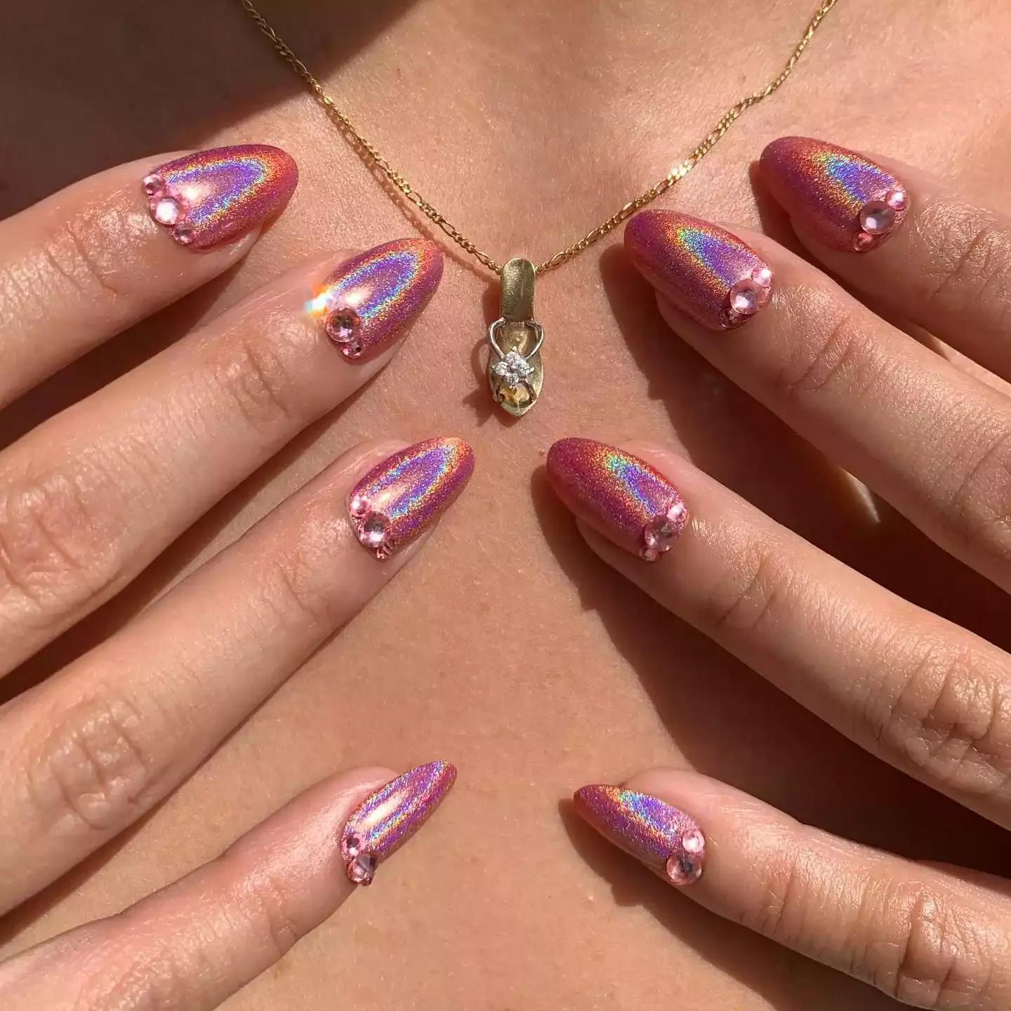 Голографический маникюр со стразами