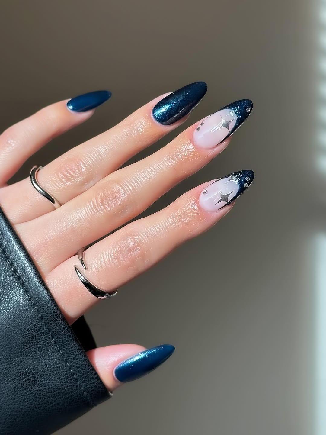Холодный и глубокий синий подойдет тебе, если ты хочешь начать год с построения долгосрочных планов. Он выглядит строго, чисто и просто благородно. Добавляй к дизайну блестки и металлические акценты, чтобы ногти выглядели более эффектно.