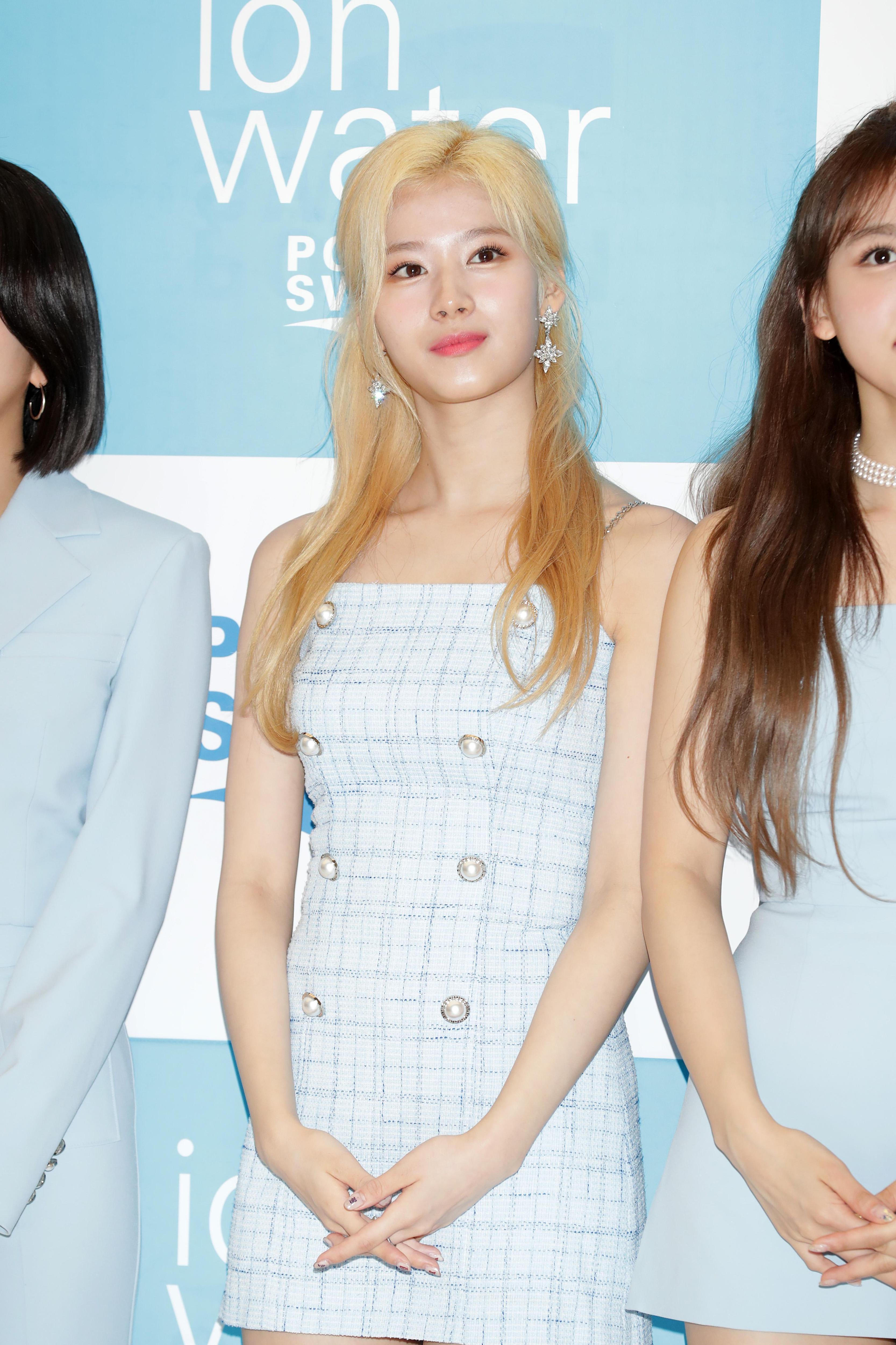 Переход к светлым волосам стал одним из самых ярких поворотов в стиле Саны. Блонд сразу изменил ее имидж: образ стал мягче и нежнее. Именно в этот период в ее образе появились элементы стиля преппи или нарядно-деловых луков. Она активно носила вещи из твида, аккуратные жакеты, юбки, блузки с рюшами. Этот этап совпал с ростом популярности TWICE, так что многие запомнили Сану именно такой.