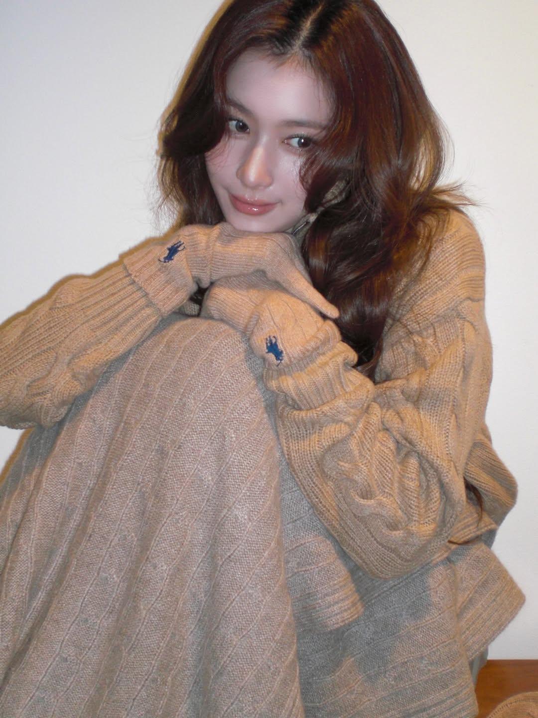 Сейчас Сана выбирает уютные образы, мягкие ткани, свитера, спокойные цвета. Конечно, такие расслабленные луки — наряды не для сцены. А прическа с локонами добавляют Сане еще больше мягкости. Такие крупные кудри могут вписаться и в твой образ, если ты тоже ценишь уют.