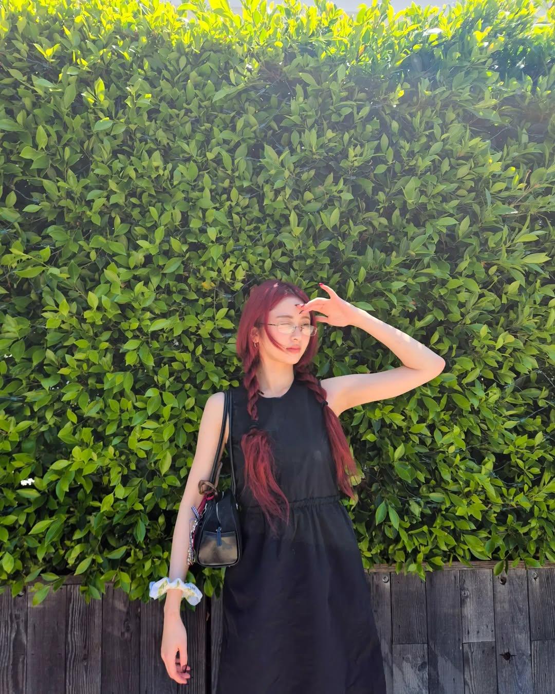 Кажется, Юнджин очень понравилось экспериментировать с волосами, и она продолжила это делать. Теперь девушка перекрасилась в винно-красный цвет. Да и прически она стала делать самые разные: косички, пучки, кудри, серферские локоны, укладки с лентами в тон нарядам.