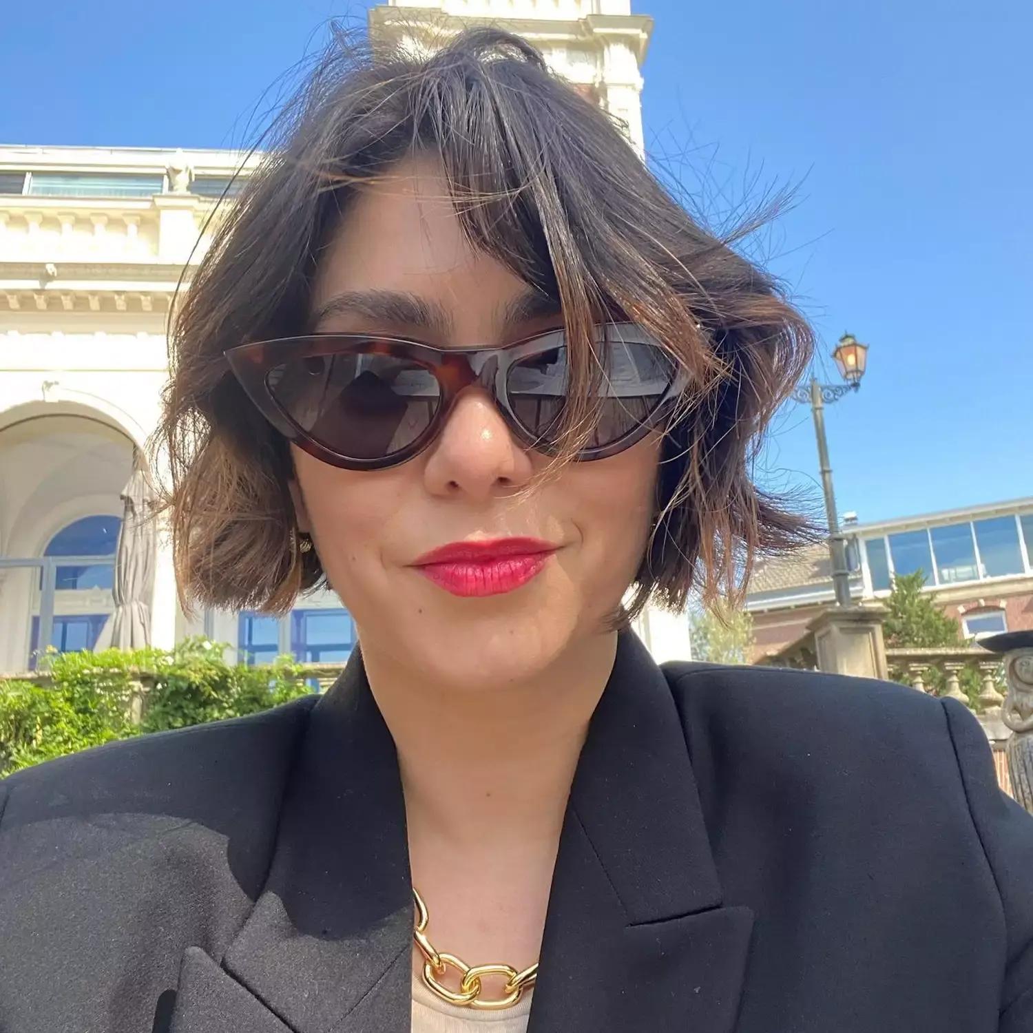 Укладка минимальная: суши волосы феном с легким подкручиванием концов внутрь или наружу (в зависимости от настроения). Эта стрижка требует уверенности, потому что она очень графичная и заметная. Решишься повторить?