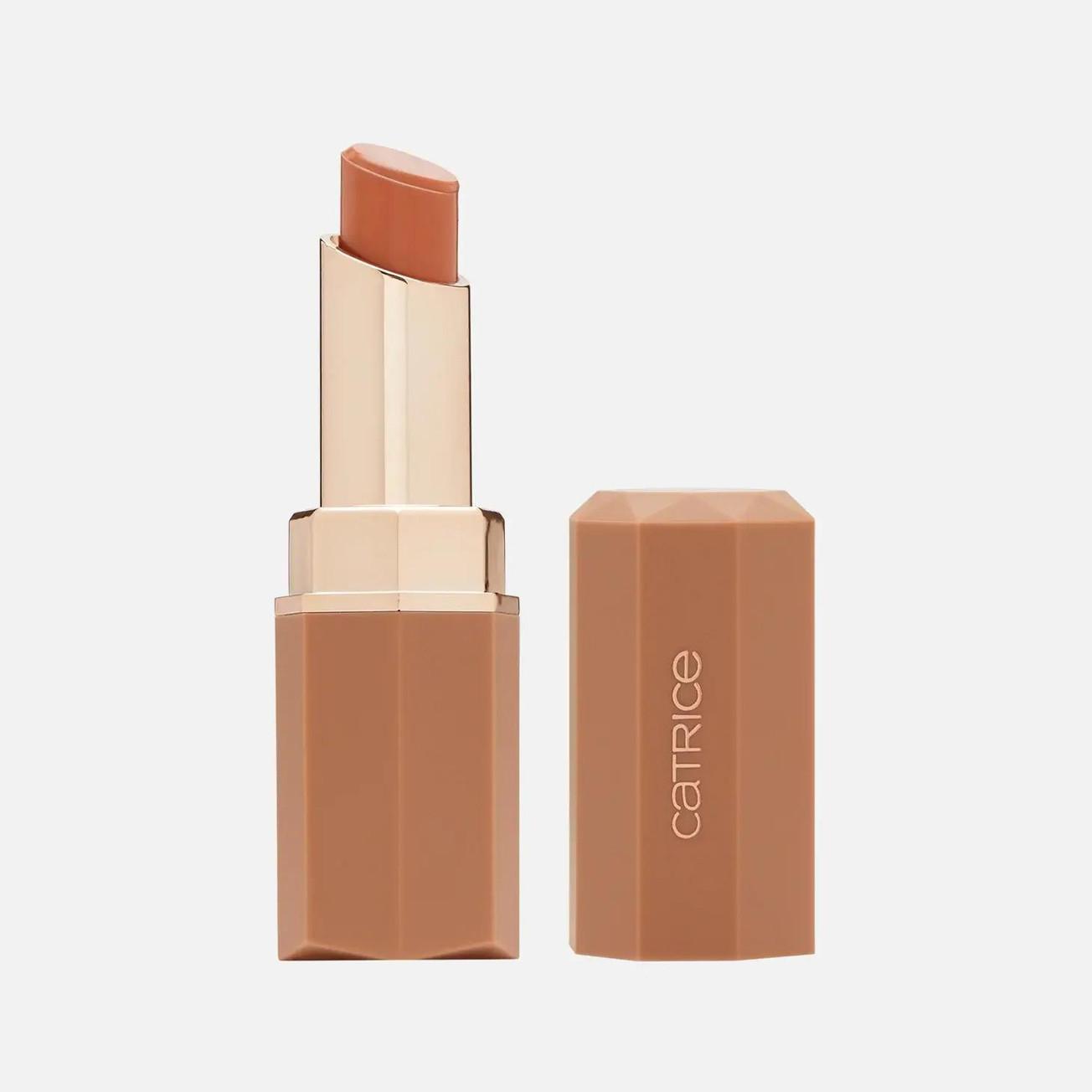 Губы в этом образе — самый главный акцент. Светлый коричнево-розовый оттенок выглядит максимально естественно, но именно глянцевая текстура выводит его на новый уровень. Это наш любимый стеклянный эффект из соцсетей, который всем так хочется повторить.
