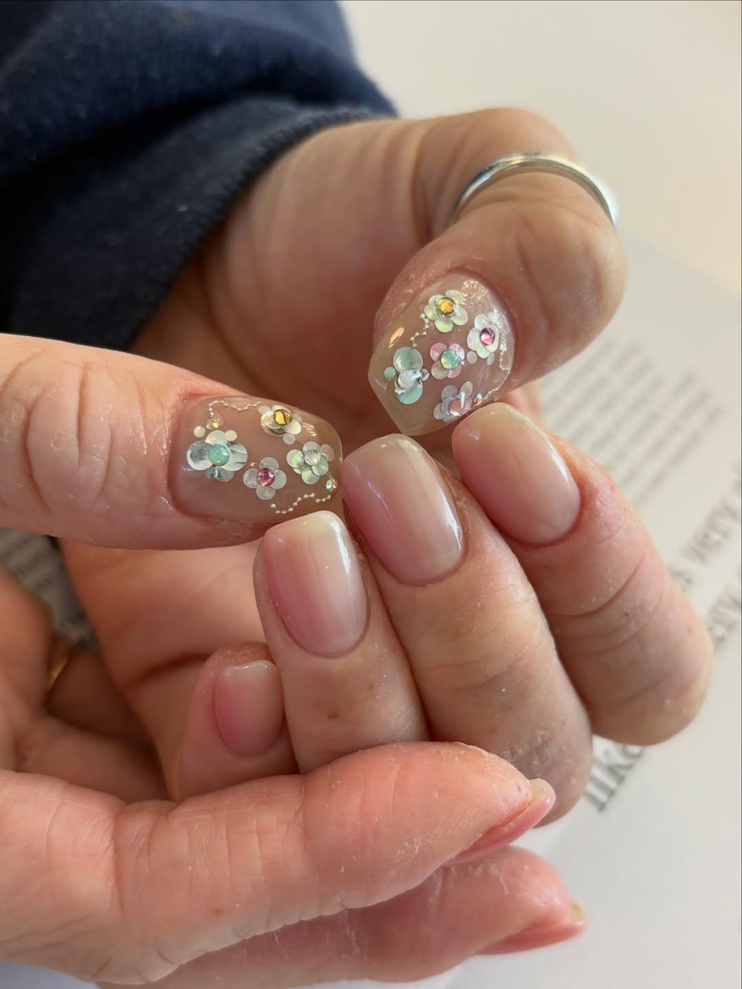У Кайли все цветы одинаковые, но тебе не обязательно повторять за ней точь-в-точь. Пусть у тебя один цветов будет чуть больше, другой — меньше, где-то используй более яркие оттенки страз, где-то — пастельные. Именно эта «неидеальность» делает дизайн интерснее.