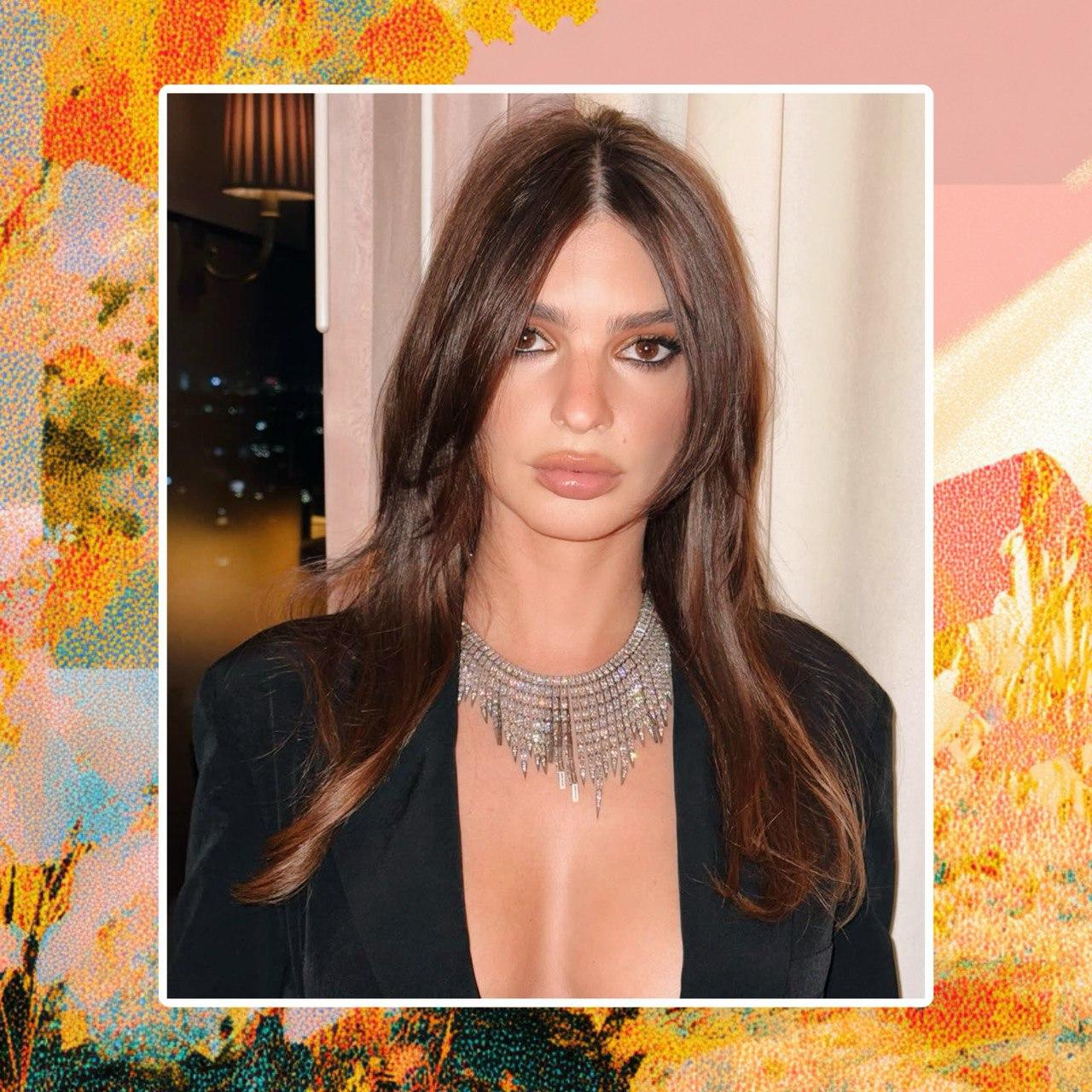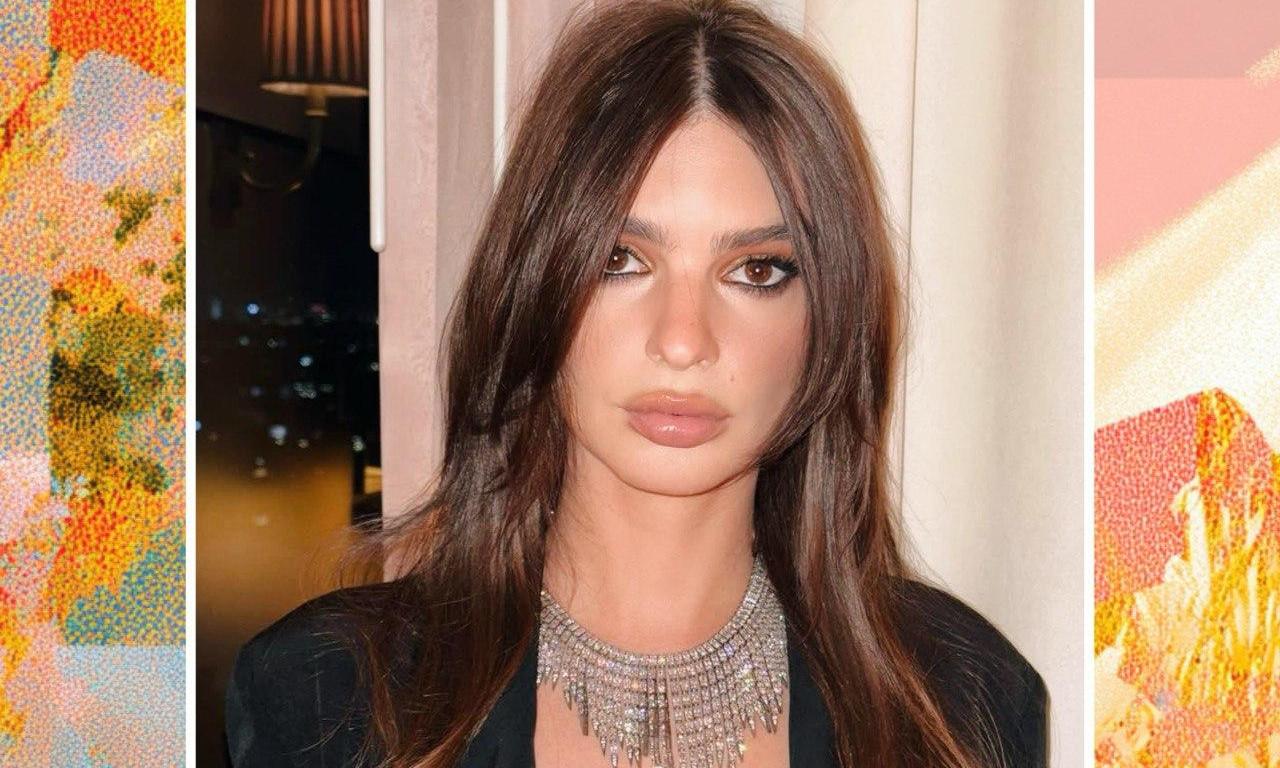 Лицо Эмили оформила цветами в теплой гамме: бронзером и персиковыми румянами. Для губ она выбрала свои любимые нюдовые цвета, которые идеально вписались в лук. Коричневый карандаш для контура, сияющая помада и блеск — любимая формула Ратаковски.
