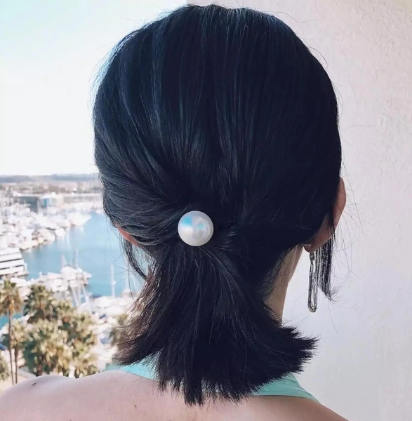 Когда хвостик сам по себе простой, акцент смещается на аксессуар. Крупная жемчужина, декоративная заколка, металлический зажим — они превращают обычный хвост в модное заявление. Сначала собери волосы в хвост любым удобным способом и закрепи обычной резинкой. Теперь добавь акцент: заколку с крупной жемчужиной, декоративную шпильку, яркую ленточку, смелый цветок. Даже самый простой хвостик становится интересным с правильным аксессуаром.