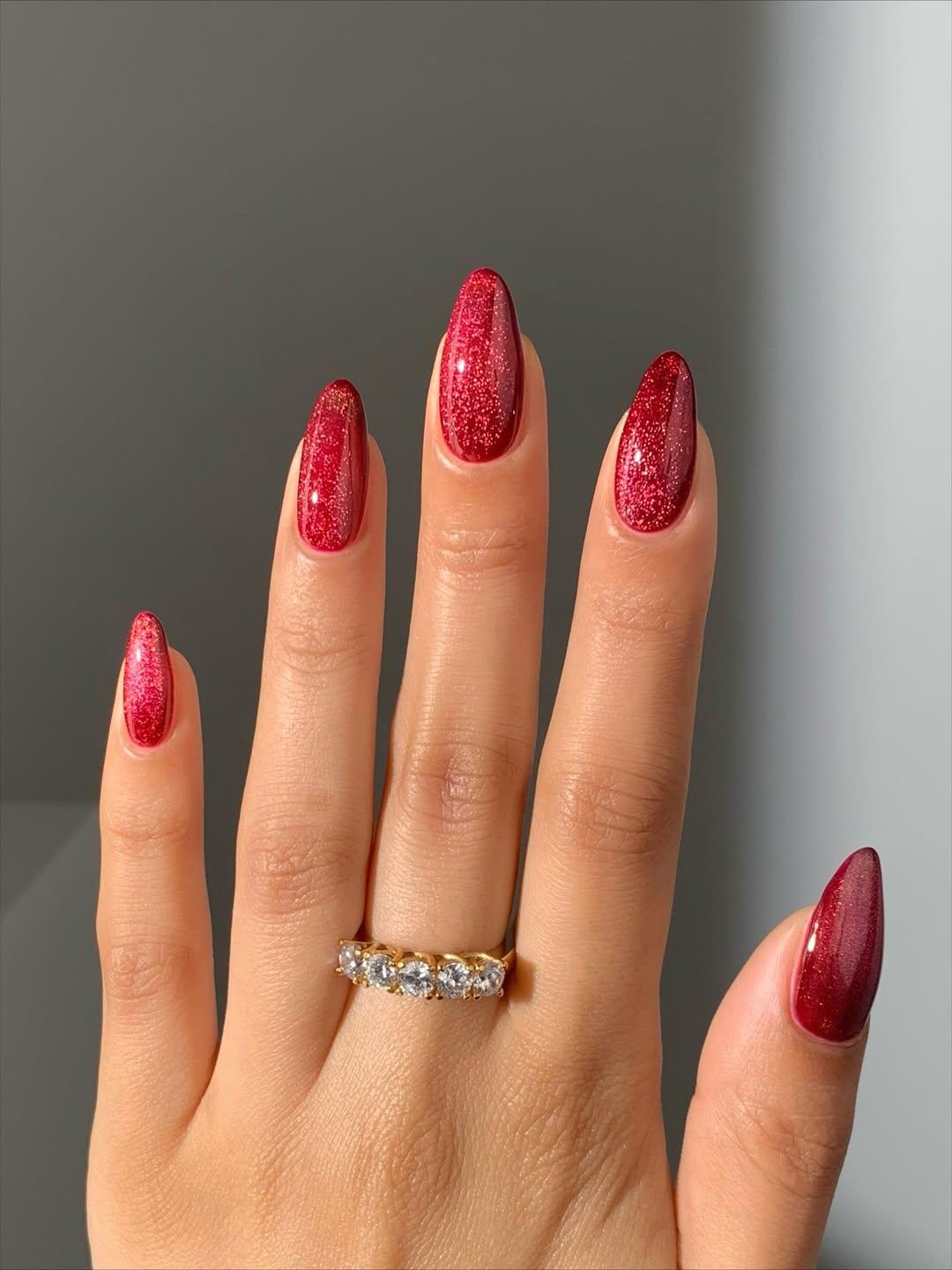 Блестящий красный маникюр