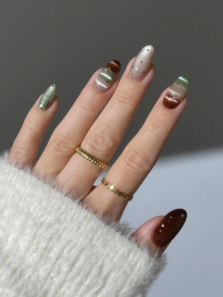 Каждый сезон приносит свои цветовые комбинации в нейл-арт. Весна этого года, например, мы все неожиданно влюбилась в сочетание, которое на первый взгляд кажется странным: теплый шоколадно-коричневый и приглушенный серо-зеленый. Эта пара стала вирусной в социальных сетях, а сейчас перебирается и на ноготочки в жизни.