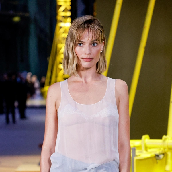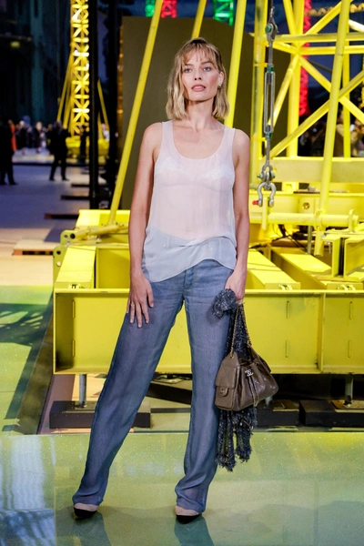 На сам показ Марго пришла не в корсете или каком-нибудь романтичном платье, к которым мы все привыкли во время ее промо-тура, а в комплекте из свежей коллекции Chanel haute couture весна-лето 2026, который состоял из полупрозрачной майки в духе девяностых, которую мы привыкли называть просто «алкоголичкой», и струящихся брюк, имитирующих джинсовую ткань. Получился образ на грани небрежности и роскоши, который идеально дополнил новую стрижку. Легкая небрежность в одежде и четкая линия в прическе — этот контраст сработал безотказно.