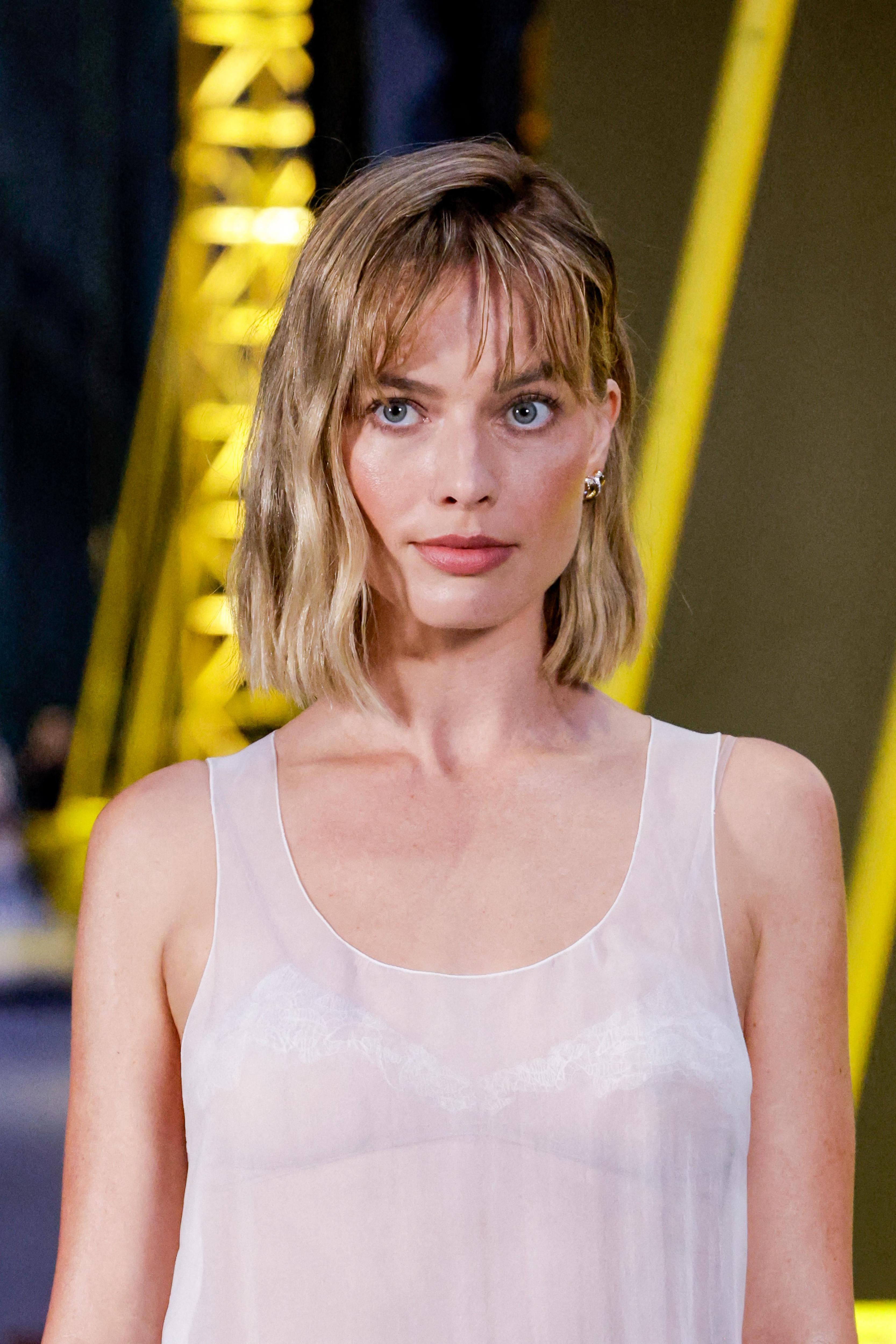 Теперь у Робби боб, который заканчивается где-то между подбородком и ключицами. Аккуратное каре с легкой челкой обрамляет лицо, делая черты выразительнее, и при этом оставляет пространство для укладки — от гладкого варианта до небрежных волн.