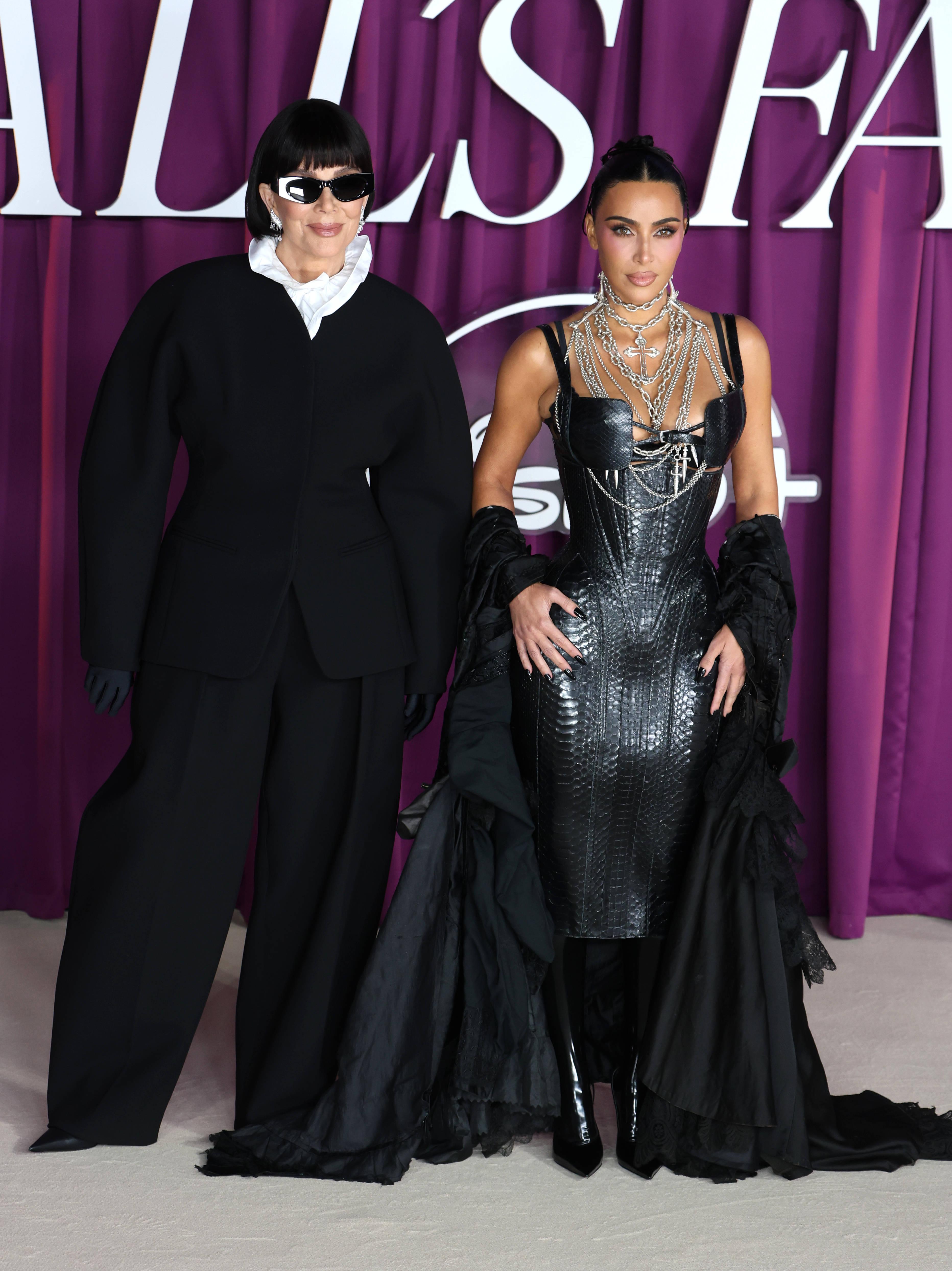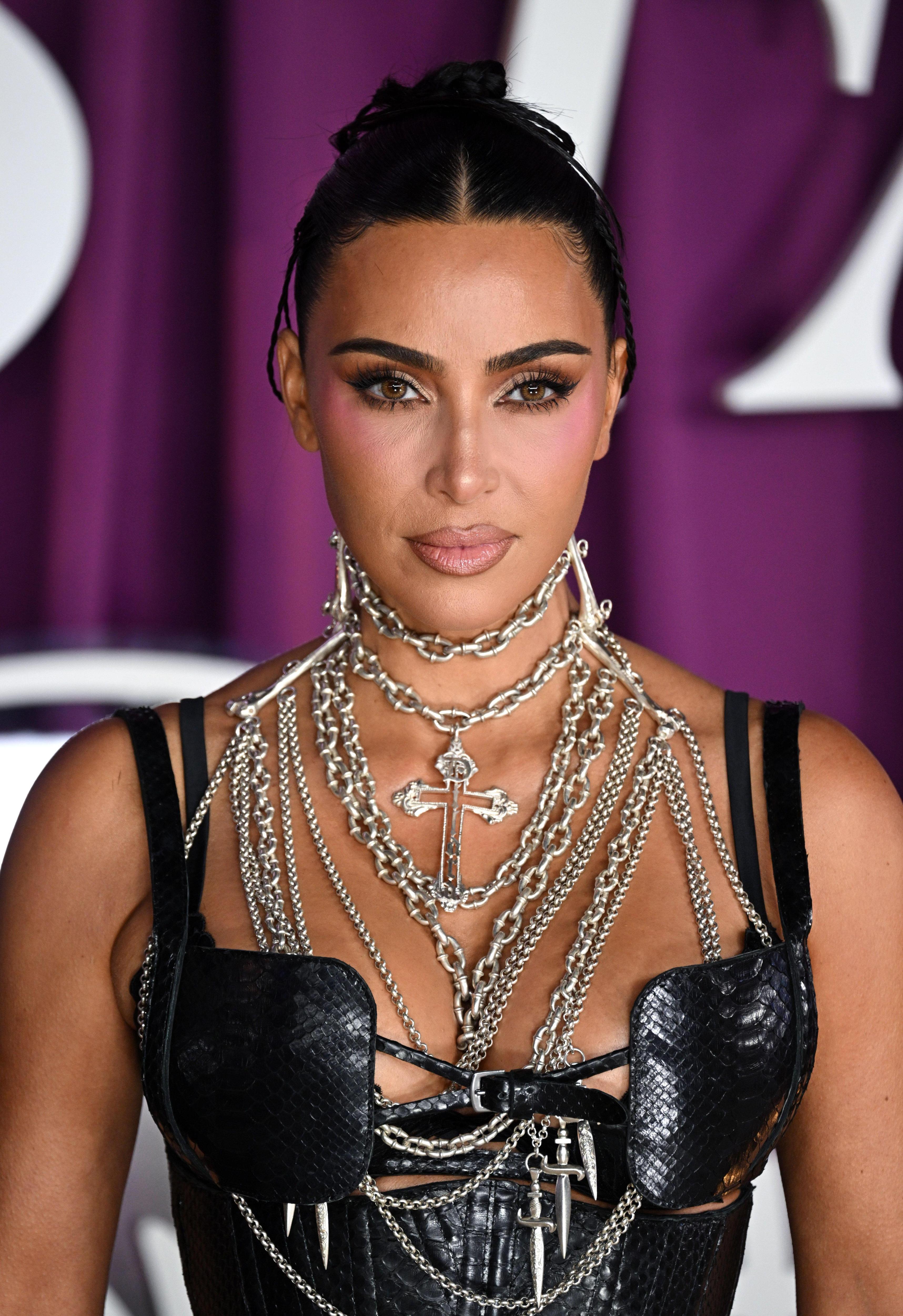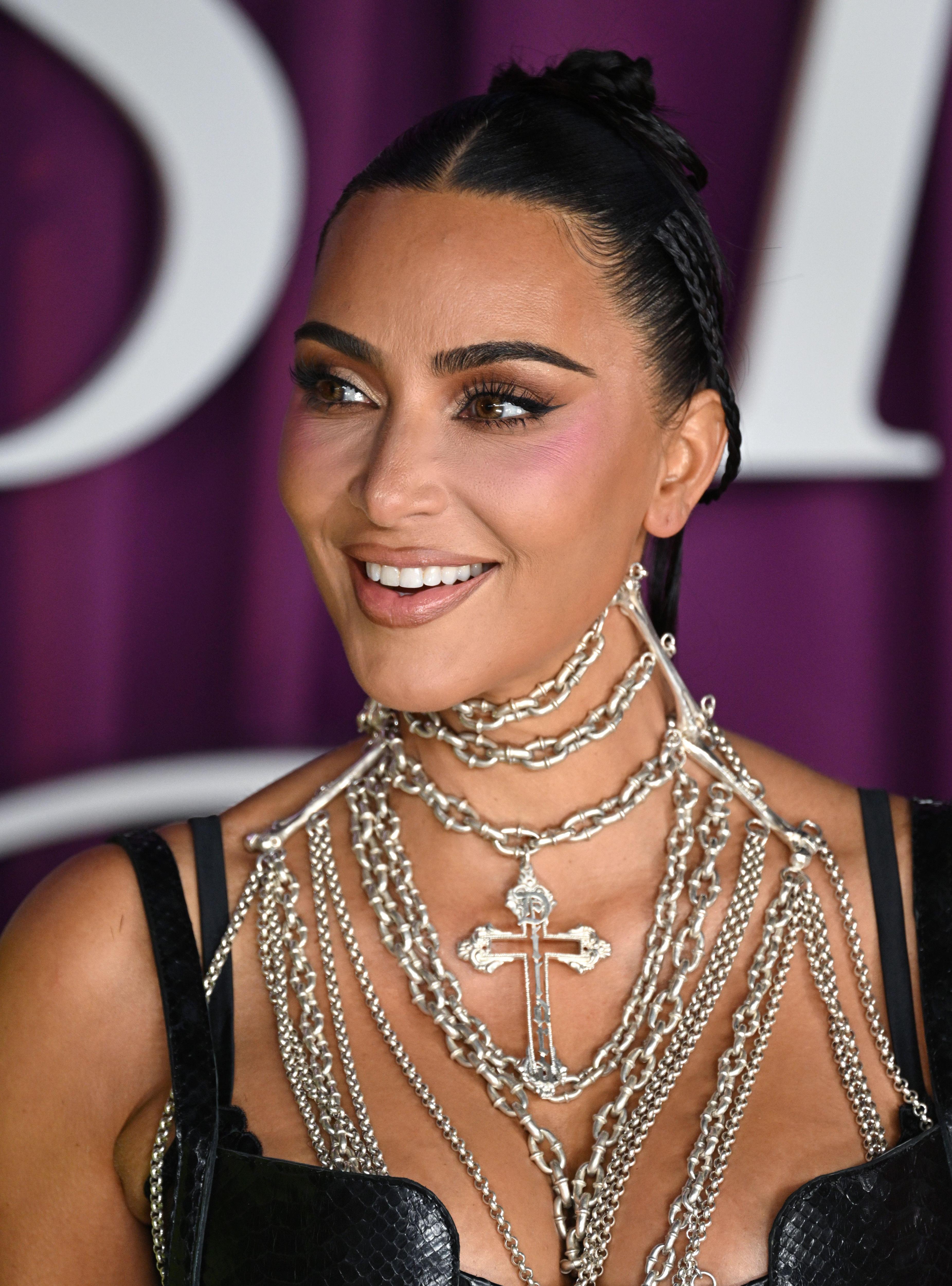 Для выхода в Лондоне Ким решилась на полностью противоположный вайб. Она появилась в кожаном наряде с крокодиловым принтом от турецко-британского дизайнера Дилары Финдикоглу из коллекции весна-лето 2026. Всего месяц назад на подиуме Недели моды его представила Наоми Кэмпбелл.