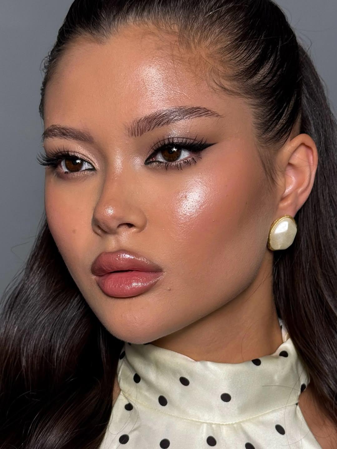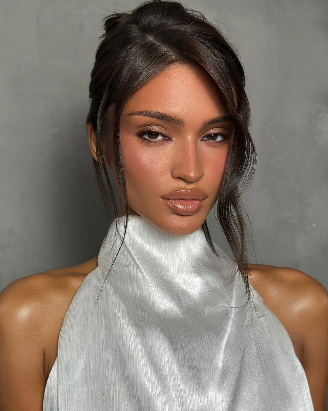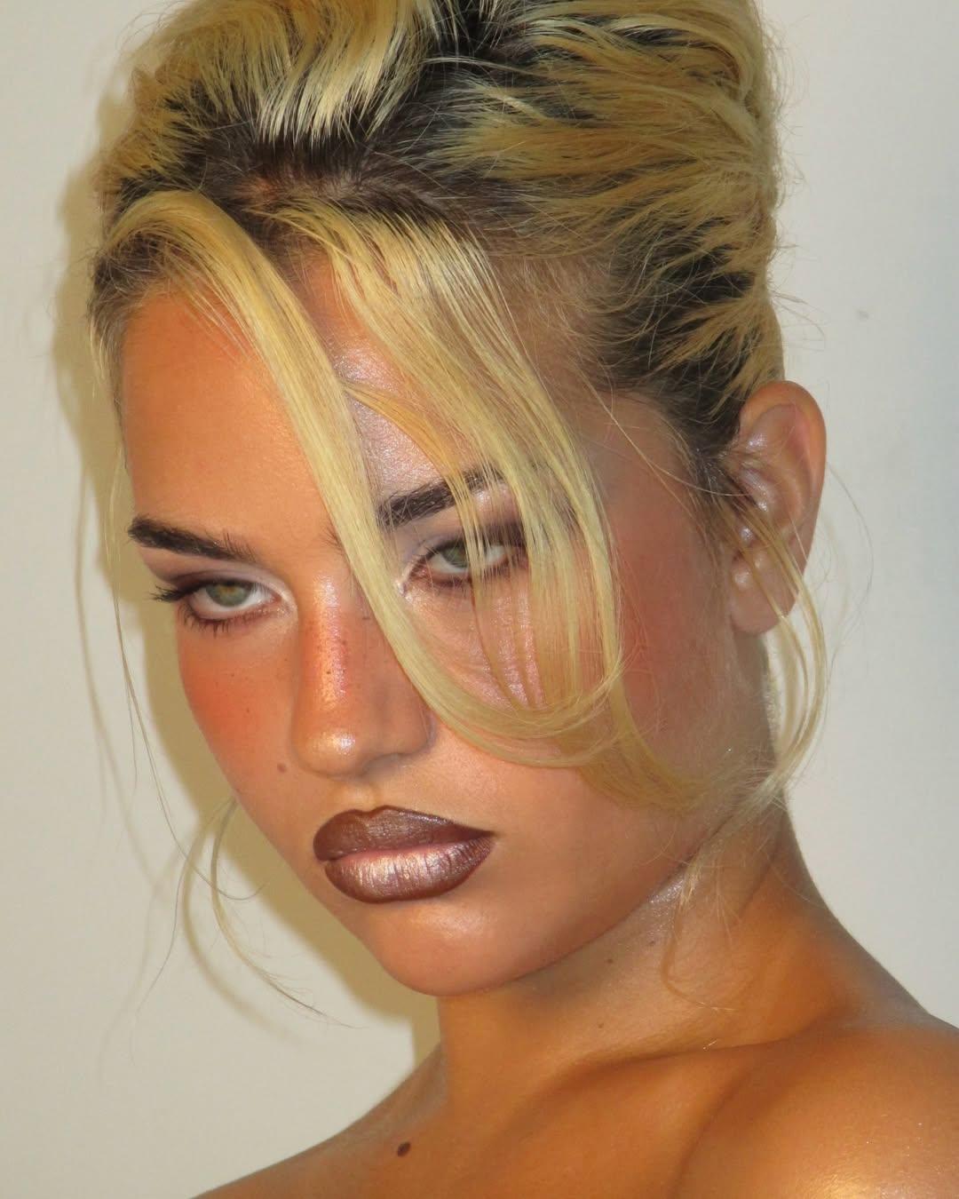 Для этого макияжа тебе понадобится очень много хайлайтера. Нанеси его на щеки, над бровями и на нос. А губы выдели глубоким насыщенным коричневым оттенком с матовым финишем. Это придаст им особую выразительность и объем.