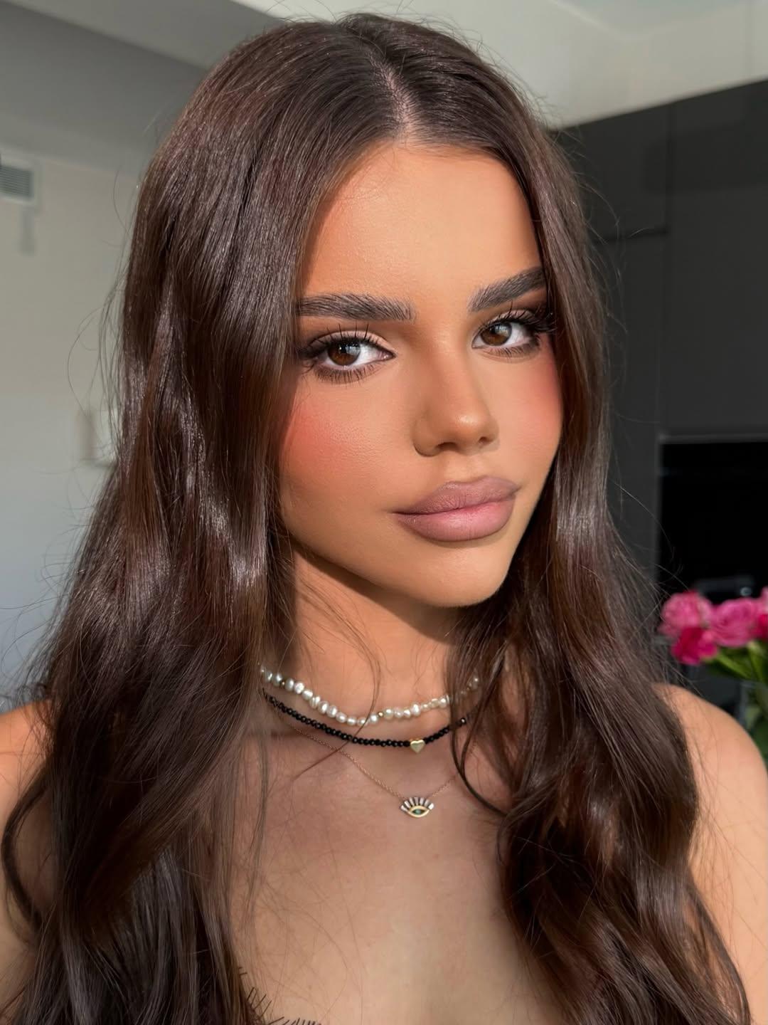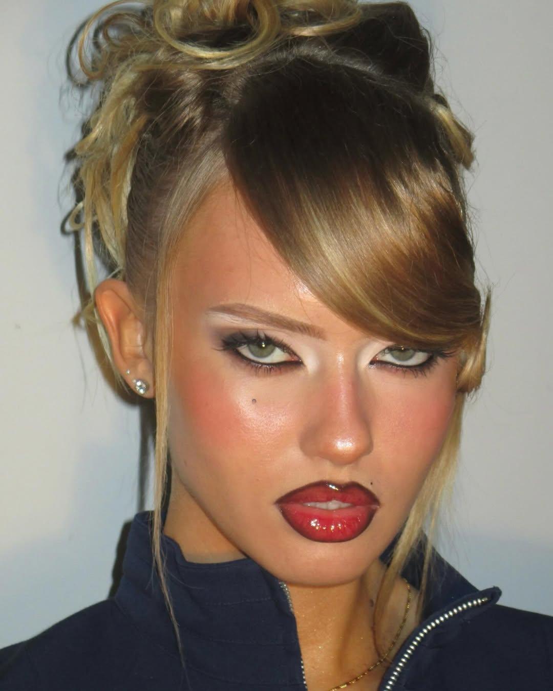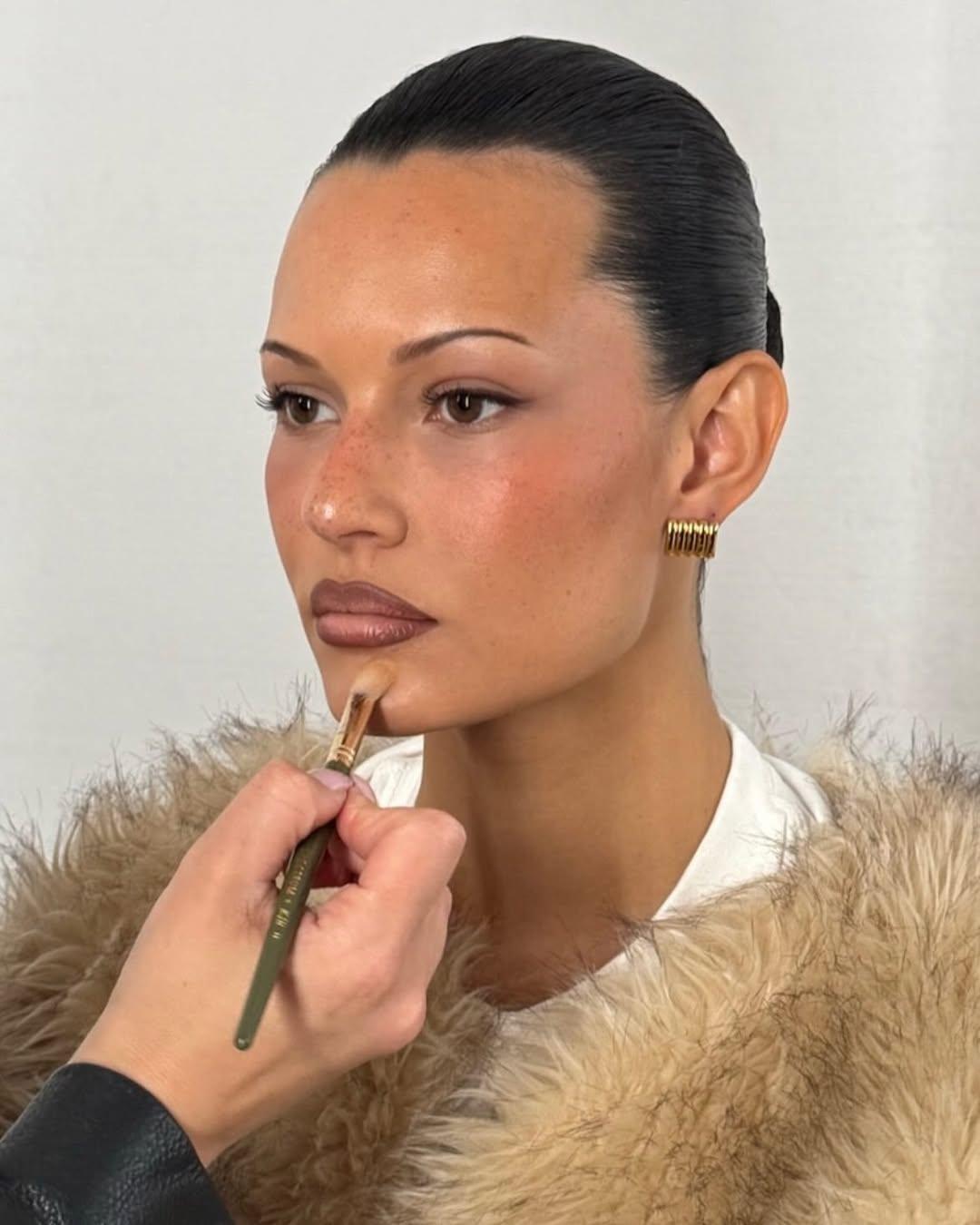 Для этого макияжа тебе понадобится очень много хайлайтера. Нанеси его на щеки, над бровями и на нос. А губы выдели глубоким насыщенным коричневым оттенком с матовым финишем. Это придаст им особую выразительность и объем.
