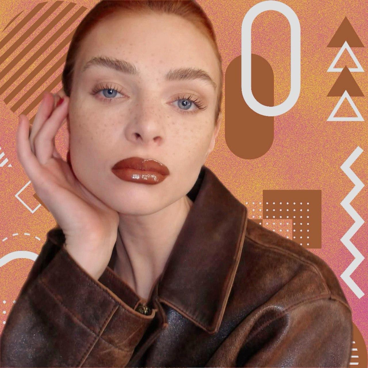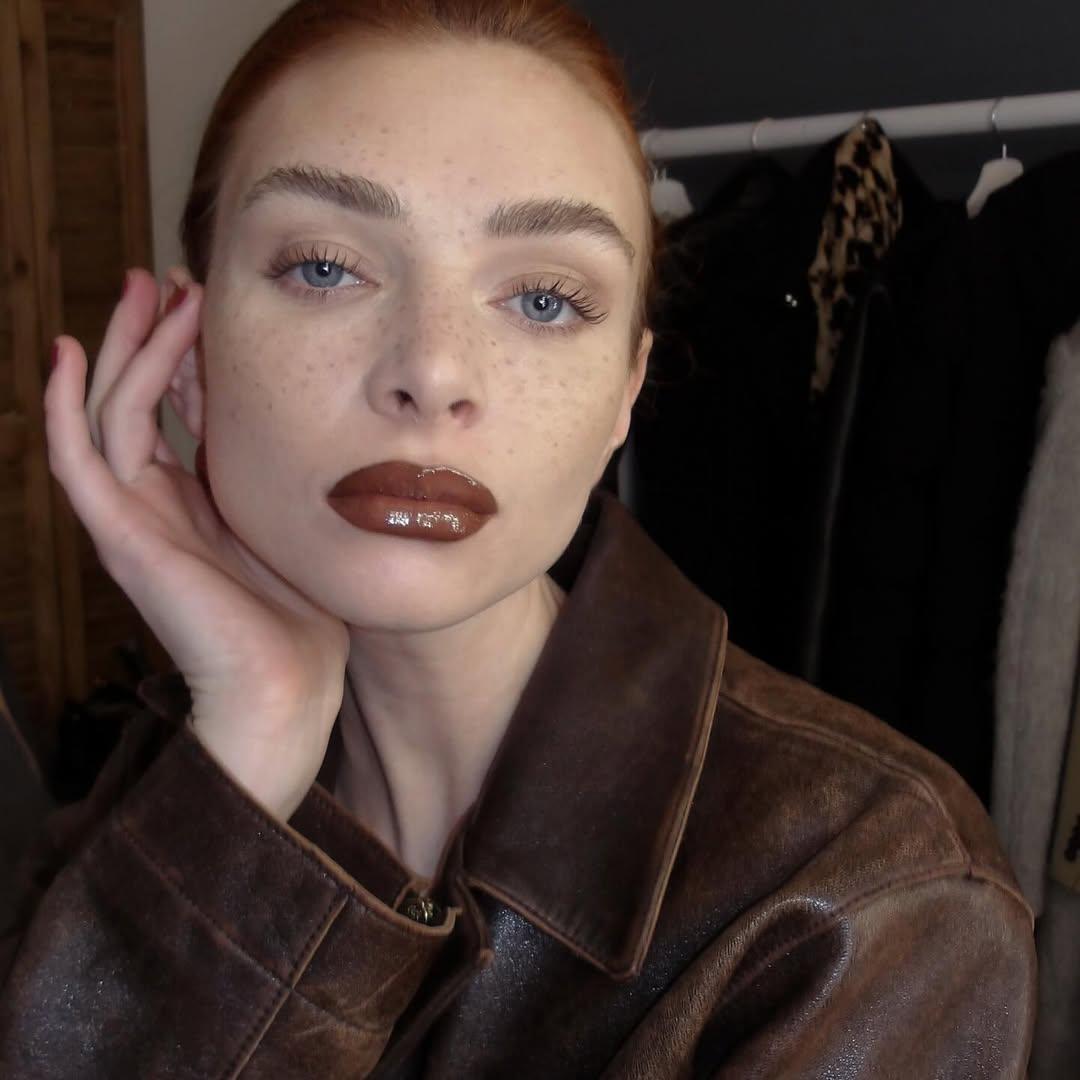 Сейчас в моде эстетика девяностых и нулевых, а в эти времена модной была перламутровая помада. Коричневые губы тоже были актуальными, так что предлагаю объединить оба тренда. Используй коричневую помаду с блестящим финишем или нанеси блеск с шиммером поверх кофейного тинта.