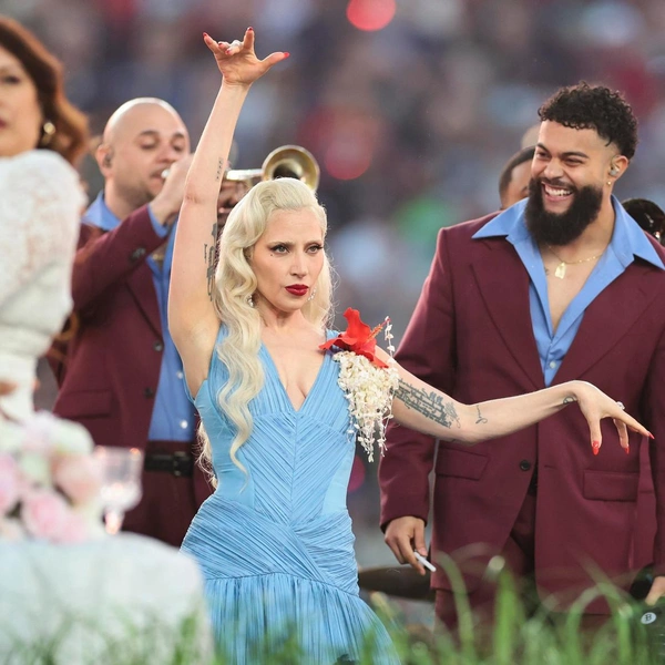 Во время музыкальной паузы на Супербоуле Леди Гага появилась на сцене вместе с Bad Bunny, исполнив сальса-версию песни «Die With a Smile». Их совместный выход стал одним из самых обсуждаемых моментов шоу — не только из-за музыки и танца, но и благодаря эффектному визуальному образу певицы.