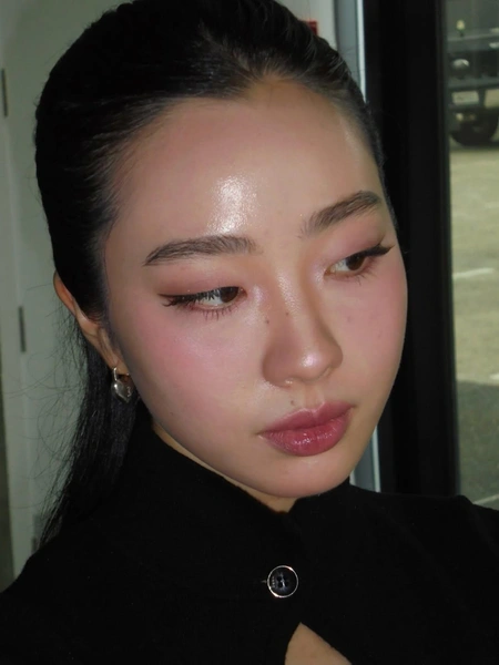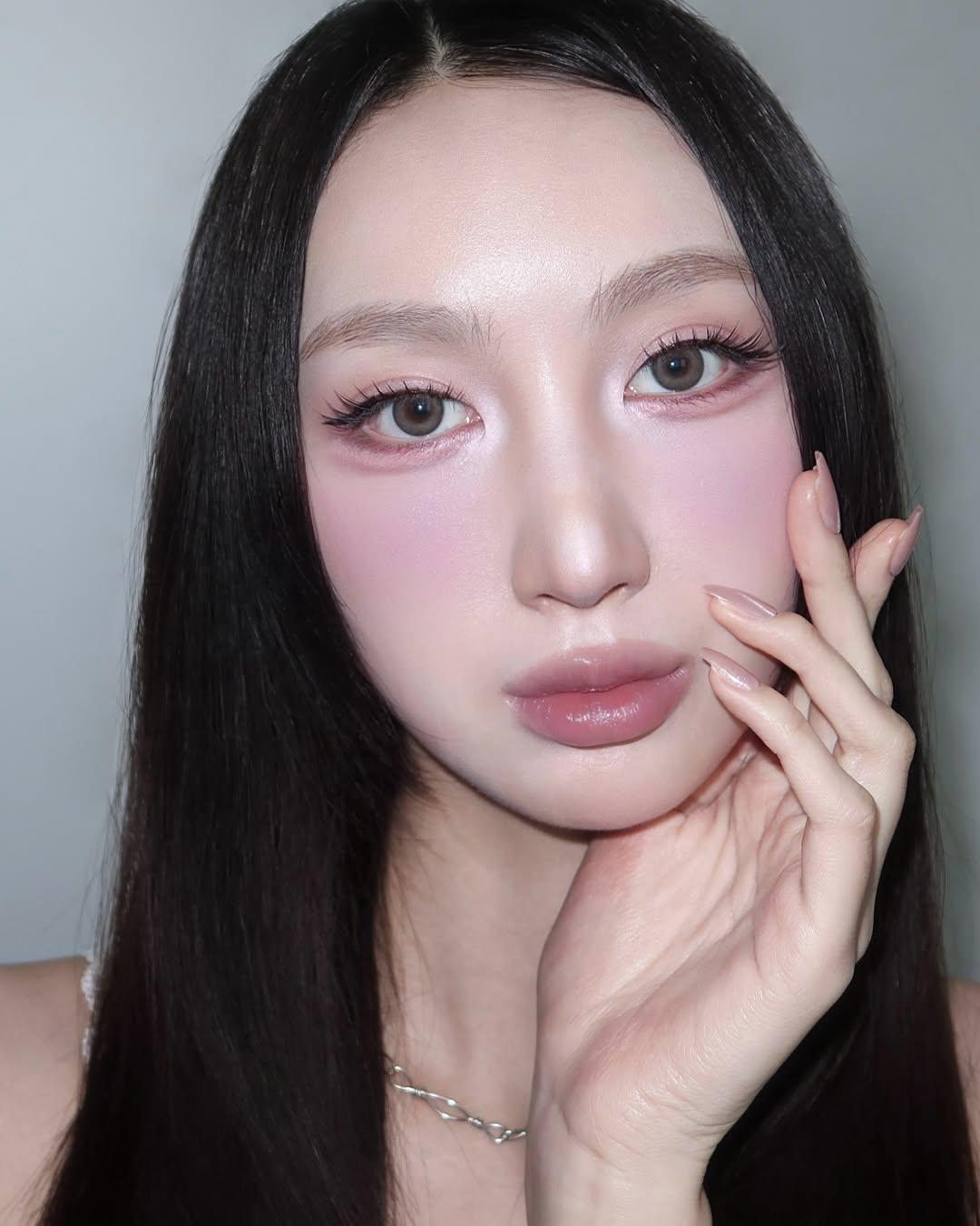 Часто азиатки в своих макияжах подчеркивают эгьё саль — припухлость под нижнем веком, которая делает лицо визуально моложе. Сделать это можно не только коричневым цветом, но и лилово-нюдовым. Им же можно и нижнее веко подвести, и нанести в качестве теней. Для губ и щек тоже выбирай холодные розовые цвета!