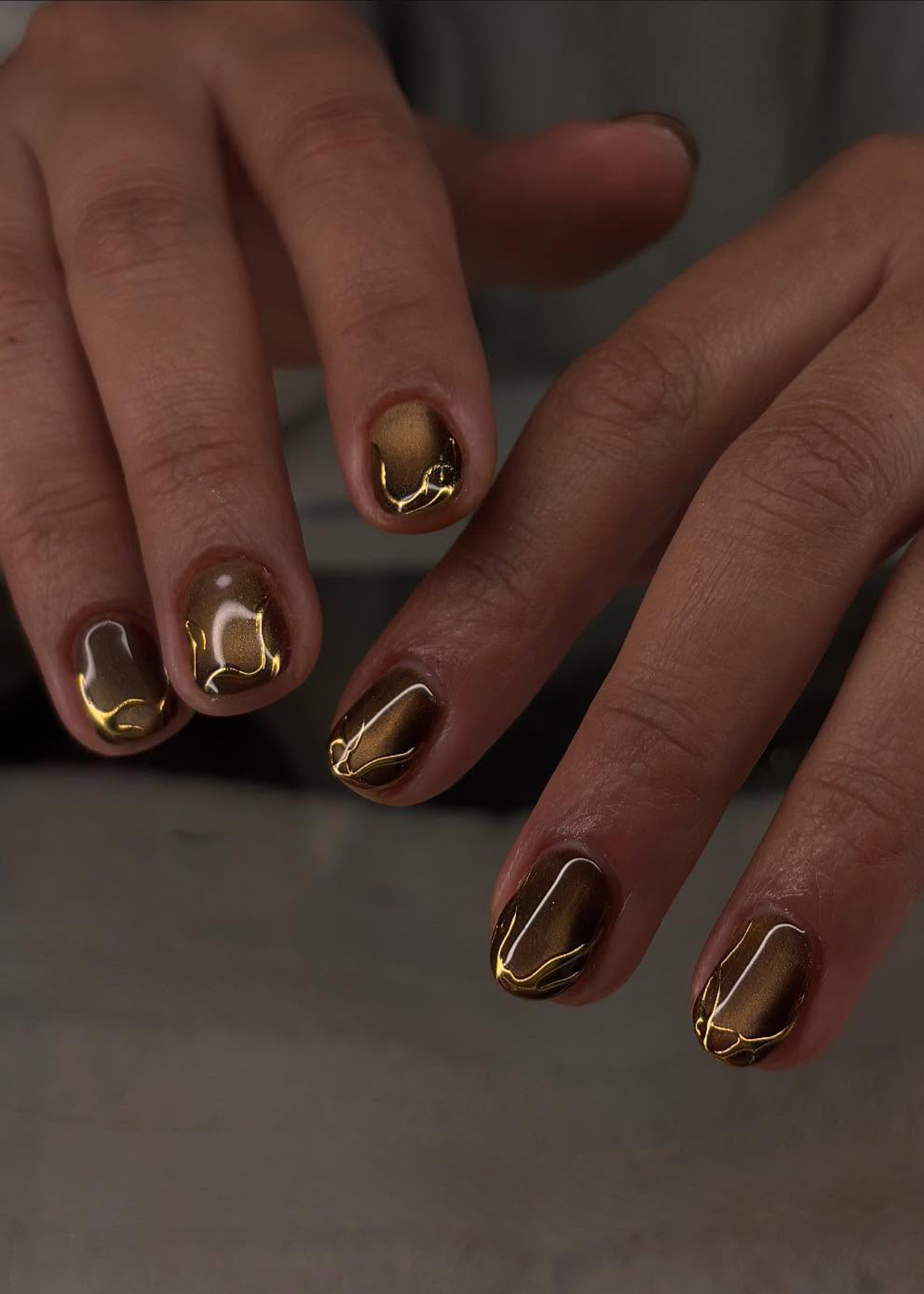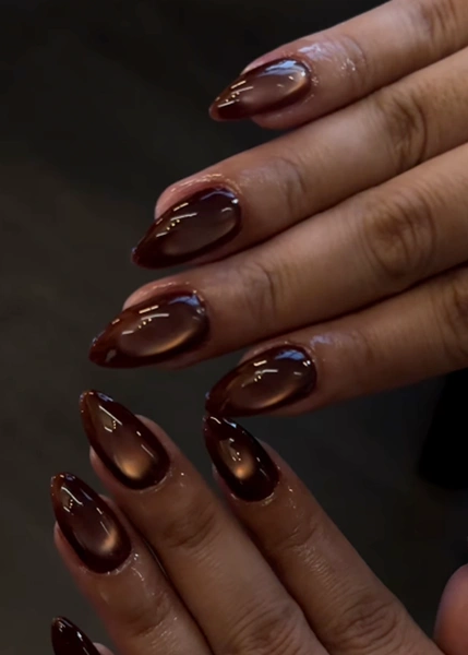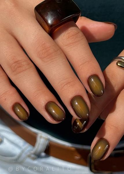 Коричневый маникюр с аурой