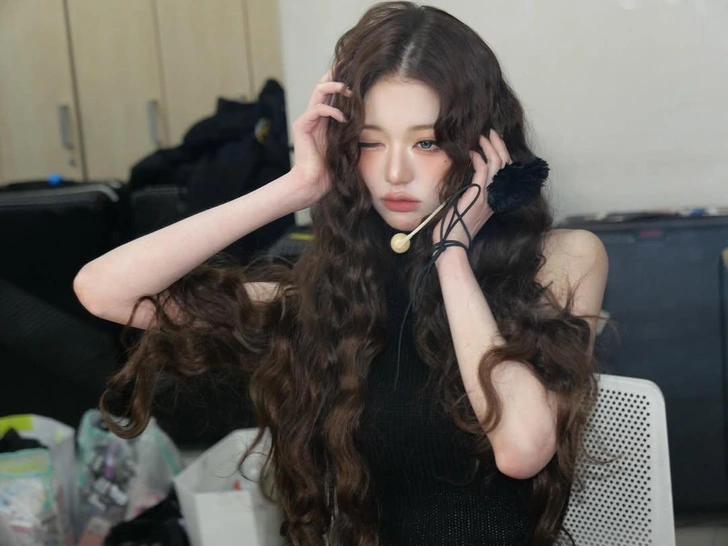 Отличный пример такого образа показала Вонён из группы IVE. Айдол выбрала именно такую мягкую матовую эстетику: бархатистая кожа, яркие персиковые румяна, аккуратные стрелки и нюдово-персиковая помада, слегка выходящая за контур губ. Образ получился кукольным и очень трендовым.