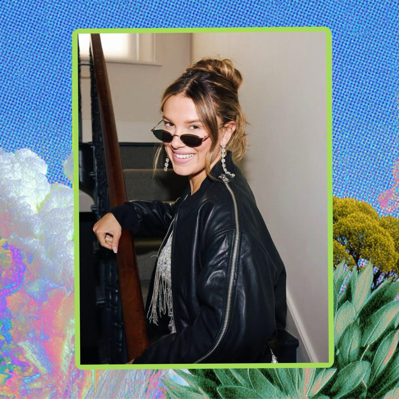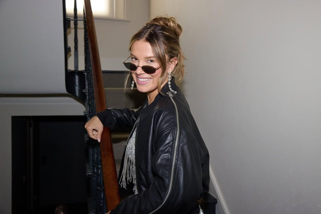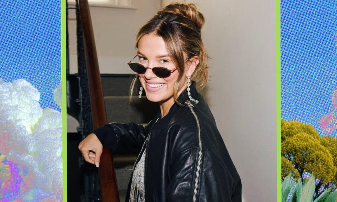 Милли «упростила» его, надев поверх кожаную куртку базового кроя. А для рок-н-рольного вайба она добавила темные солнцезащитные очки с овальными стеклами. Образ завершили длинные сережки из прозрачных камней, напоминающие по цвету и текстуре платье.