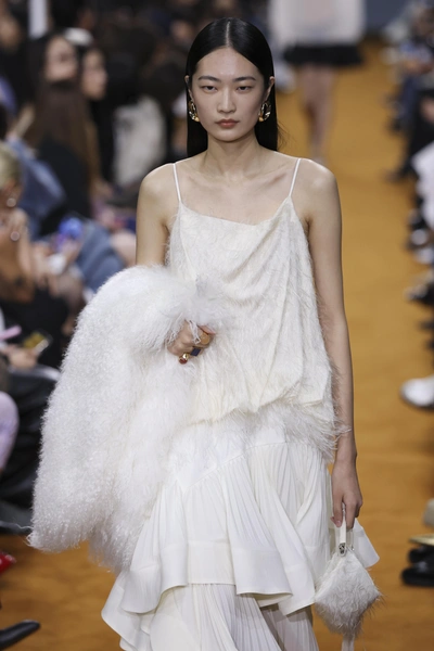 Пробор — это, казалось бы, мелочь, но именно она задает настроение. На Неделе моды в Шанхае его носили ровным и четким. Он хорошо смотрится и с распущенными волосами, и с пучками, и с хвостами. Такой пробор с сочетании с гладкими текстурами укоадок выглядит очень современно.