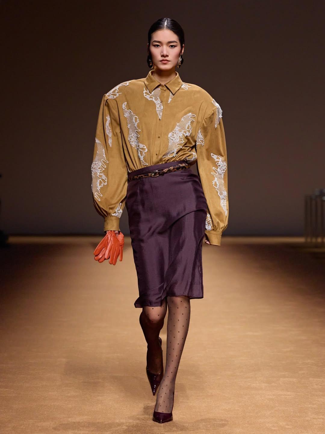 Если говорить про укладки, то здесь все максимально лаконично. Низкий пучок — почти обязательный элемент многих показов. Он должен быть идеально гладким. Никакой текстуры или выбившихся прядей! Волосы должны быть уложены так, будто их буквально отполировали. Это добавляет образу строгости и делает его более дорогим.