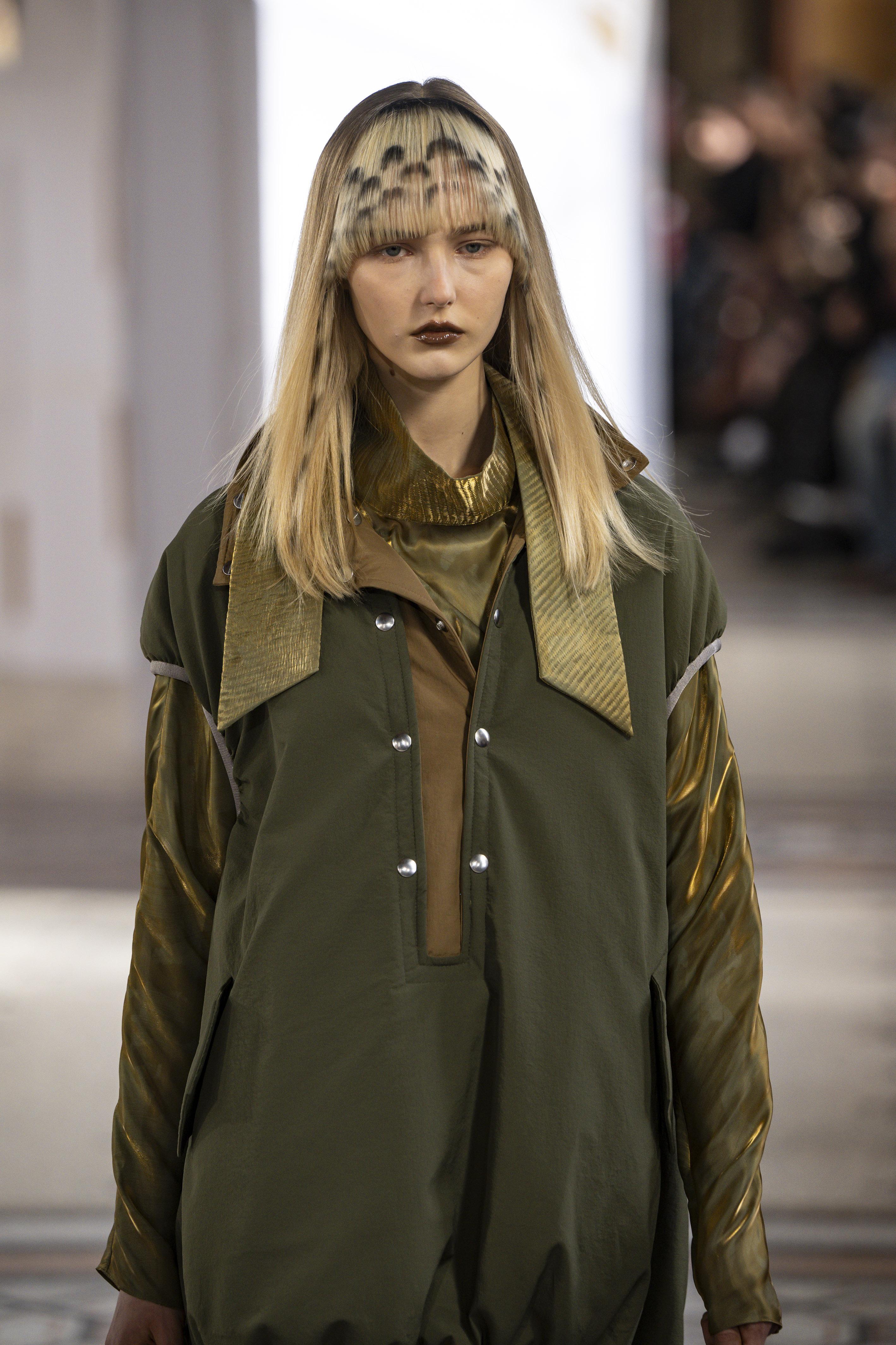 Если ты вдруг раздумывала над необычным окрашиванием, то подсмотри идею с показа Kiko Kostadinov. Модели показали необычные варианты с цветными челками, на которых есть и осветление, и градиент, и даже анималистичный принт.