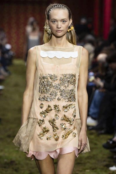 Отдельное внимание стилисты уделили аксессуарам для волос. Казалось бы, такой простой элемент, как ободок-пружинка, неожиданно оказался на подиуме Miu Miu и сразу превратился из школьного аксессуара нулевых в модную деталь.