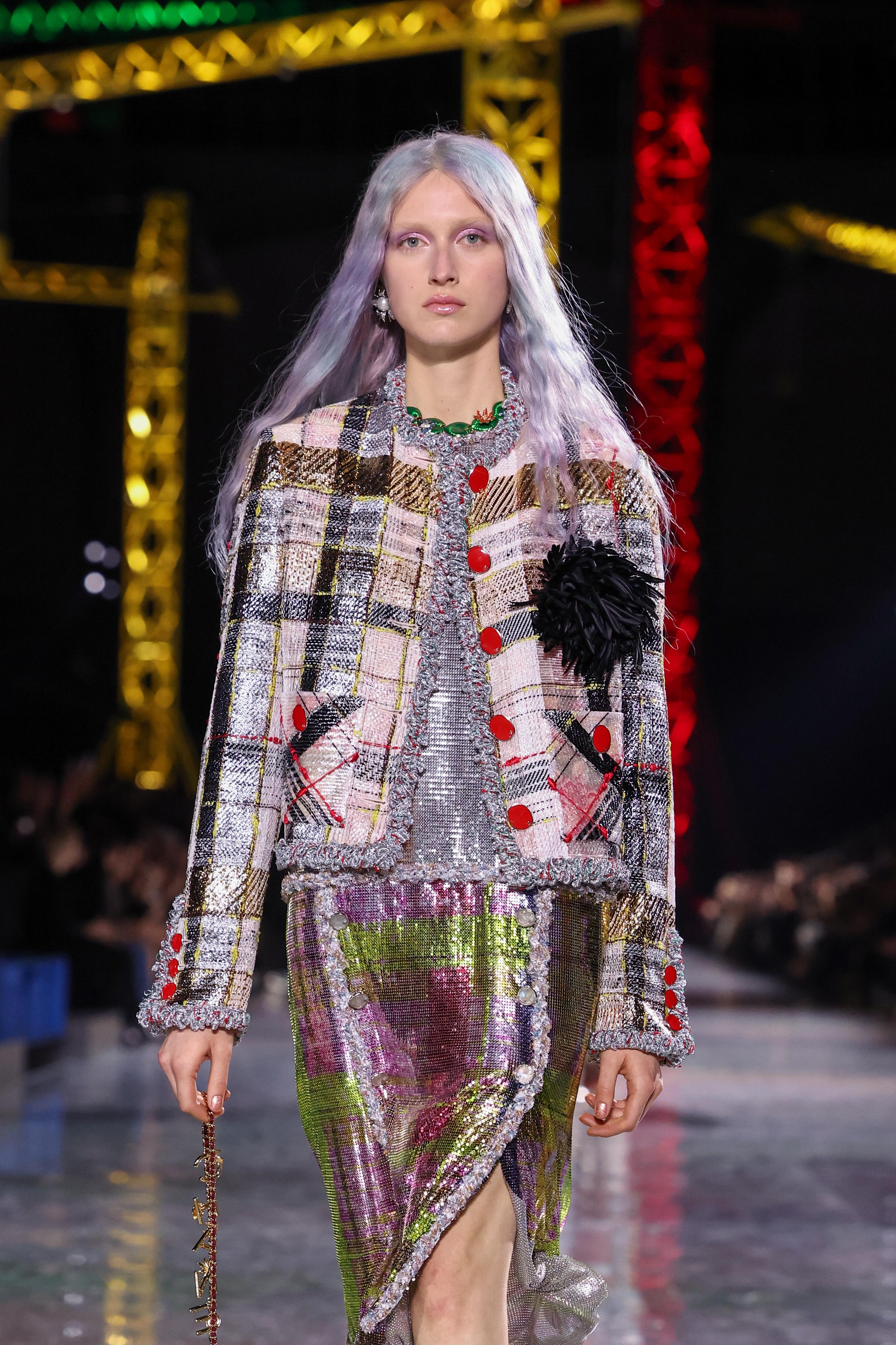 На шоу Chanel модели продемонстрировали пастельные макияжи с легкими блестками. У некоторых на веках были шиммерные тени, а у кого-то — лавандовые с сиянием. Сочетать такой мейкап на глазах можно с розовыми или другими нюдовыми глянцевыми губами.