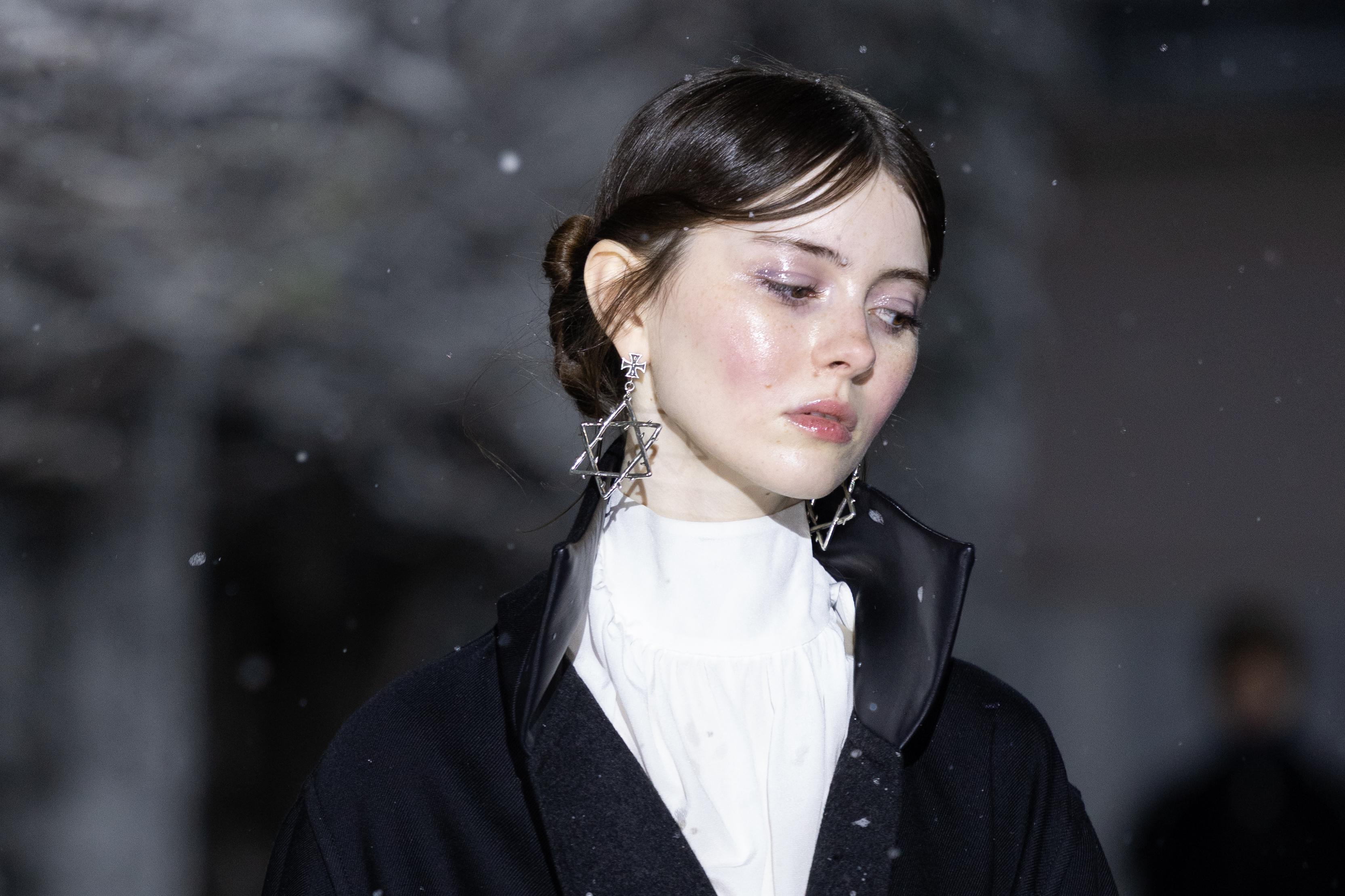 Если идея глянца и блеска тебе очень нравится, то образы с показа Enfants Riches Déprimés тоже тебя заинтересуют. Главное в луках моделей — сияние. Глянцевая кожа, влажные тени, блеск на губах — все это делает образ современным и стильным. Правда, жирной коже такой тренд вряд ли понравится.
