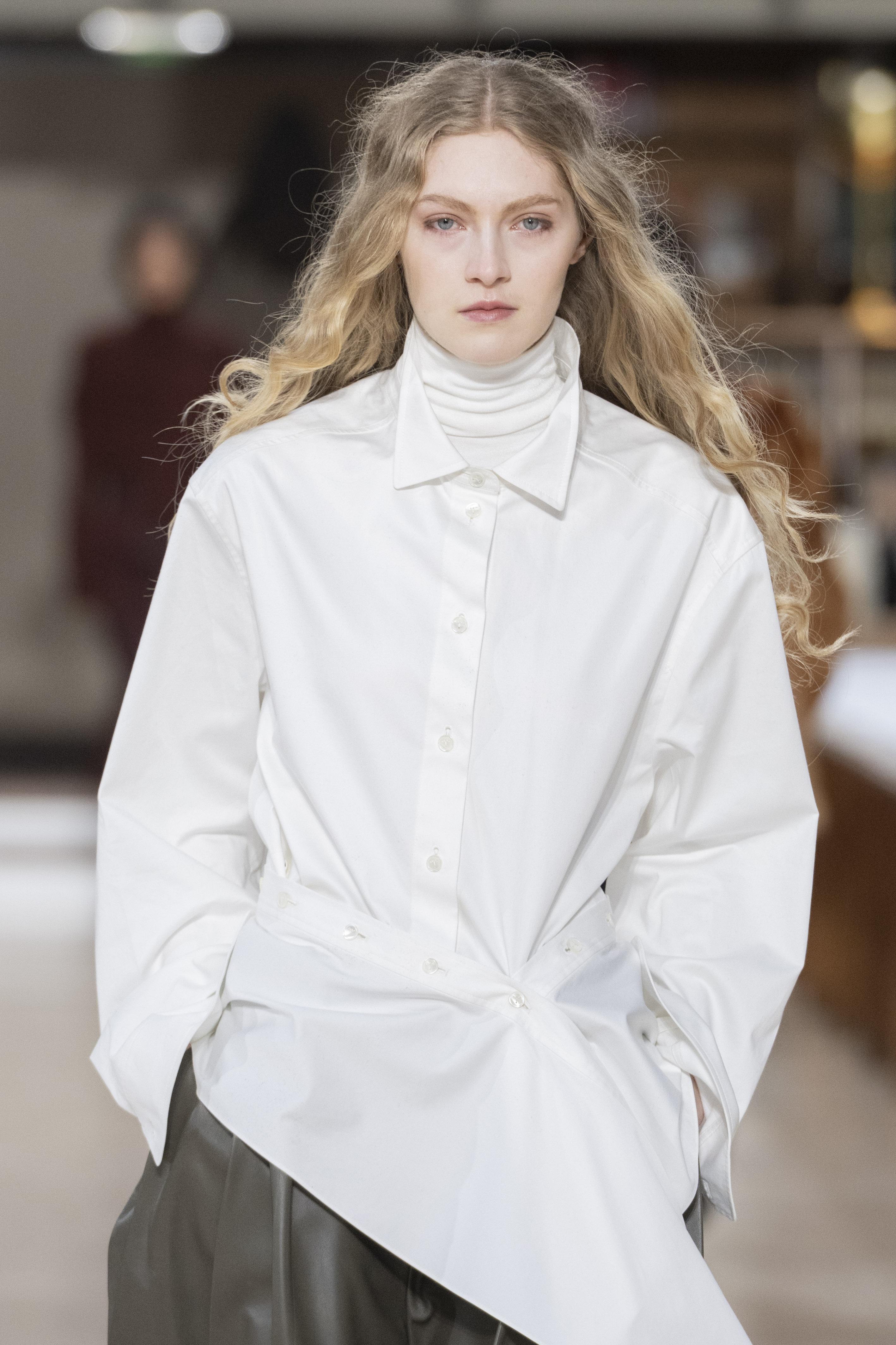Если прическа с ободком кажется слишком простой, то попробуй повторить укладку с показа Situationist. Модели удивили объемными волосами с легкими волнами и пробором набок. Такой бьюти-тренд точно получится повторить у девушек, которые любят кудри и умеют «ставить» корни.
