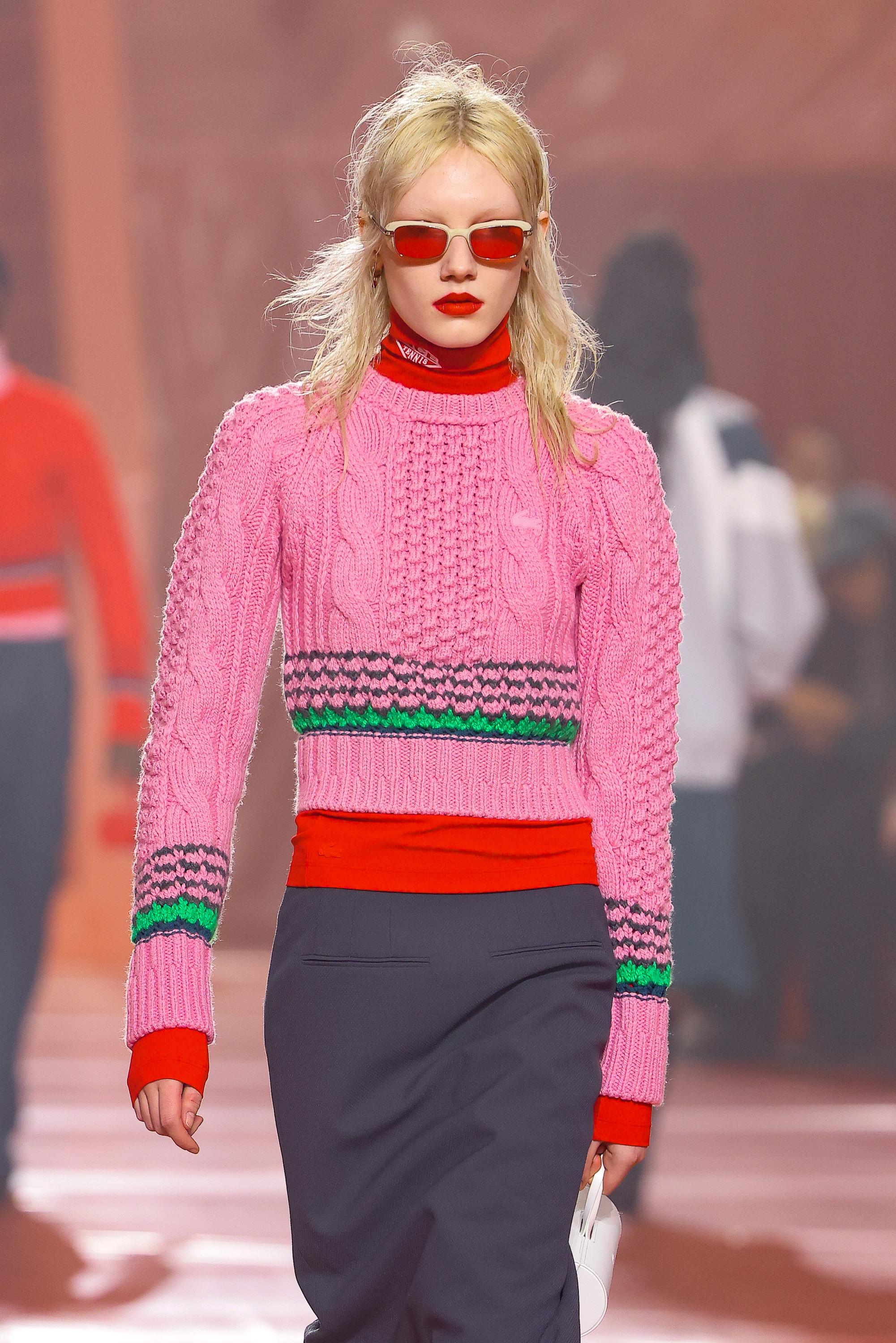 Красные губы всегда привлекают внимание! Особенно, если они сочетаются с минималистичным макияжем без других акцентов. Именно такой образ выбрали для моделей Lacoste. Можешь заметить, что у некоторых девушек и брови были осветленным, так что никаких акцентов на глаза.