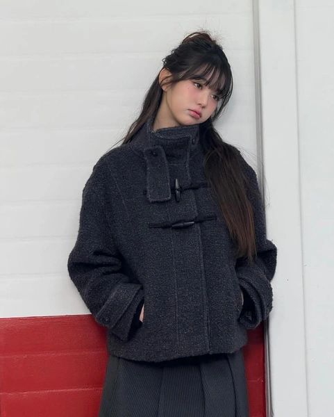 На первый взгляд кажется, что ее укладка — это просто полураспущенные волосы с легкой челкой. Но именно в этой кажущейся простоте и кроется весь секрет. Волосы собраны частично — верхняя часть аккуратно зафиксирована, а длина остается свободной. Такой прием давно стал фирменным для девушек-айдолов: он открывает лицо, сохраняет женственность и при этом не выглядит слишком «вылизанно».