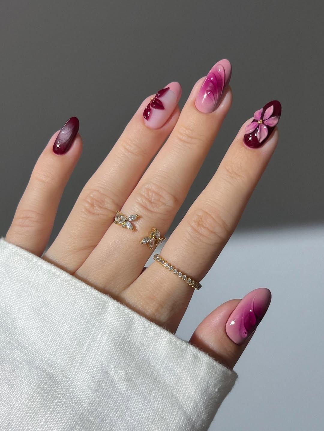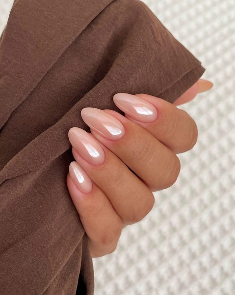 Помнишь эффект «глазированного пончика» в стиле Хейли Бибер? Вот это оно! Твои ногти будут выглядеть, будто их покрыли нежной, сияющей глазурью. Берем нюдовую базу и добавляем легкий перламутр, или делаем хромированные акценты, или даже плавный переход цвета с хромовым бликом. Это такой нежный шик, который идеально подойдет для твоего выпускного образа.