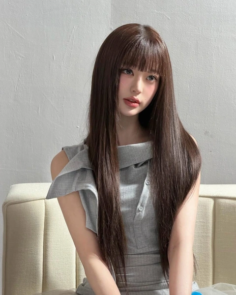 Если ты решилась на челку как у Вонён, то учти, что стрижка должна быть выполнена профессионалом. Покажи мастеру референсы, объясни, что тебе нужна плотная челка с ровным срезом, без филировки. Важно, чтобы мастер отделил достаточно густую прядь для челки — корейские стилисты берут больше волос, чем это принято в западной традиции.