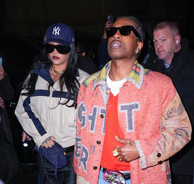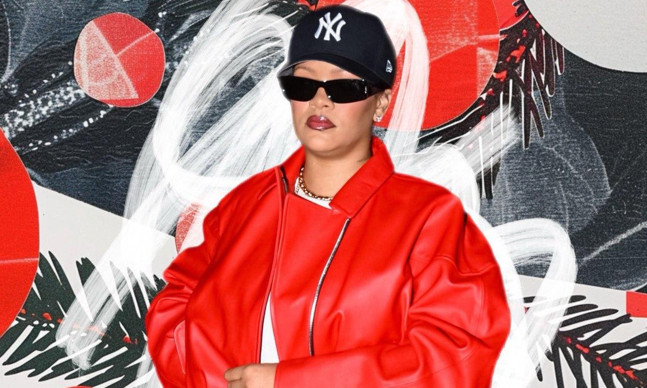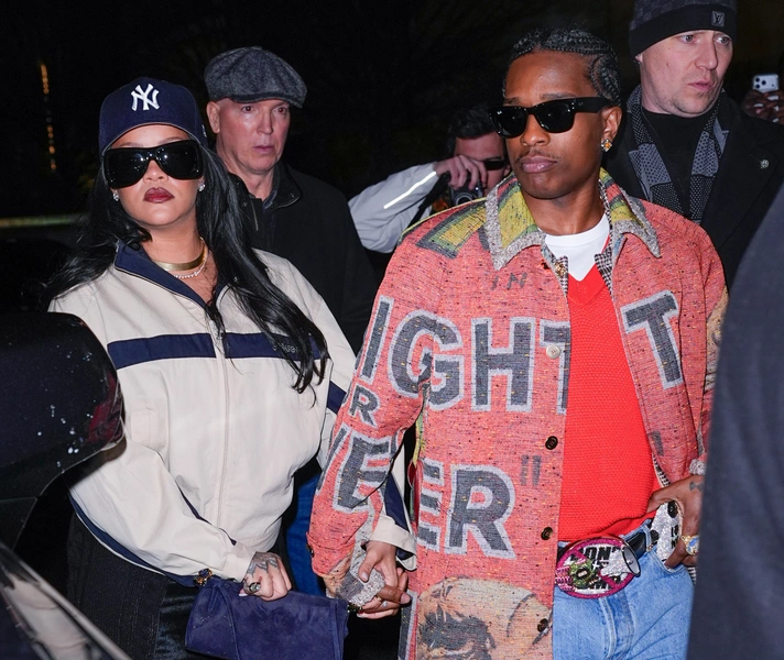 Отдельного внимания заслуживает наряд Рианны. Он идеально дополняет макияж и подчеркивает его настроение. Она выбрала объемную куртку в спортивном стиле светлого оттенка с контрастными темно-синими вставками в виде полосок. Это расслабленный, почти утилитарный силуэт, который играет на контрасте с гламурным макияжем.