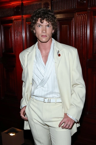 Разберем и мужской образ! Самым эффектным парнем стал актер Коннор Сторри. Он тоже надел костюм в светлых оттенках, который сочетал с рубашкой в вертикальную полоску. Свои кудри Коннор уложил в любимую расслабленную прическу с четким завитком. Ну а если тебе интересны образы других гостей с этой вечеринки, то листай подборку классных образов 👇