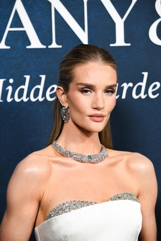 Роузи Хантингтон-Уайтли тоже выбрала белый наряд. Ее платье от The New Arrivals смотрелось очень элегантно! Его интересная деталь — часть лифа, усыпанная стразами. Она прекрасно сочеталась с массивными украшениями на шее, руках и в ушах девушки. Образ она дополнила минималистичной укладкой — гладкими волосами, зачесанными назад и собранными в «мальвинку». Макияж Роузи выбрала свой фирменный, то есть нюд с подчеркнутыми скулами и нюдовой помадой на губах.