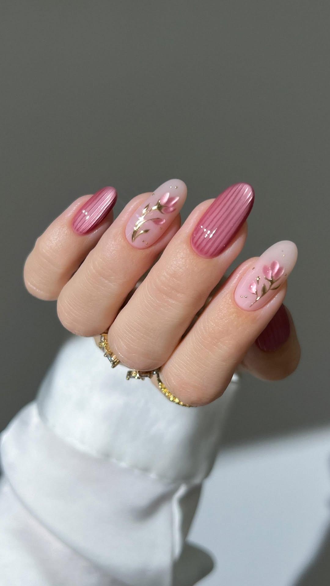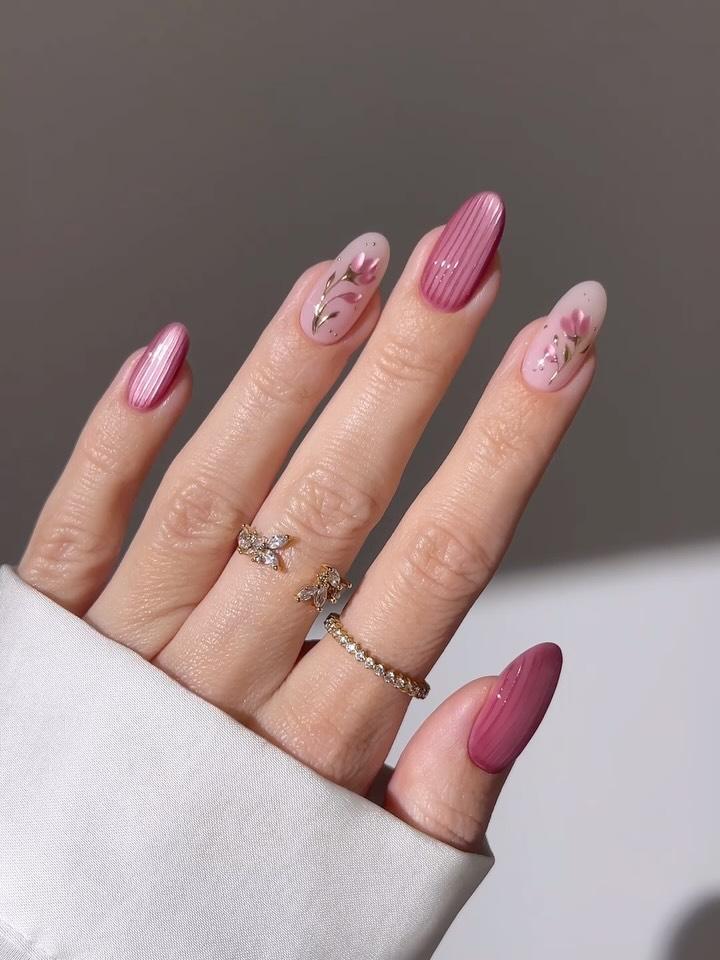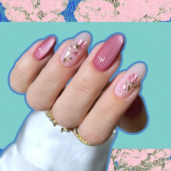 Такой маникюр прекрасно подойдет тем девушкам, которые хотят носить яркие ногти, но пока не готовы переходить на сочные, летние цвета. Еще его точно оценят любительницы розового цвета, «кошачьего глаза» и цветочных дизайнов. Повторяй или вдохновляйся на какой-нибудь другой маникюр!