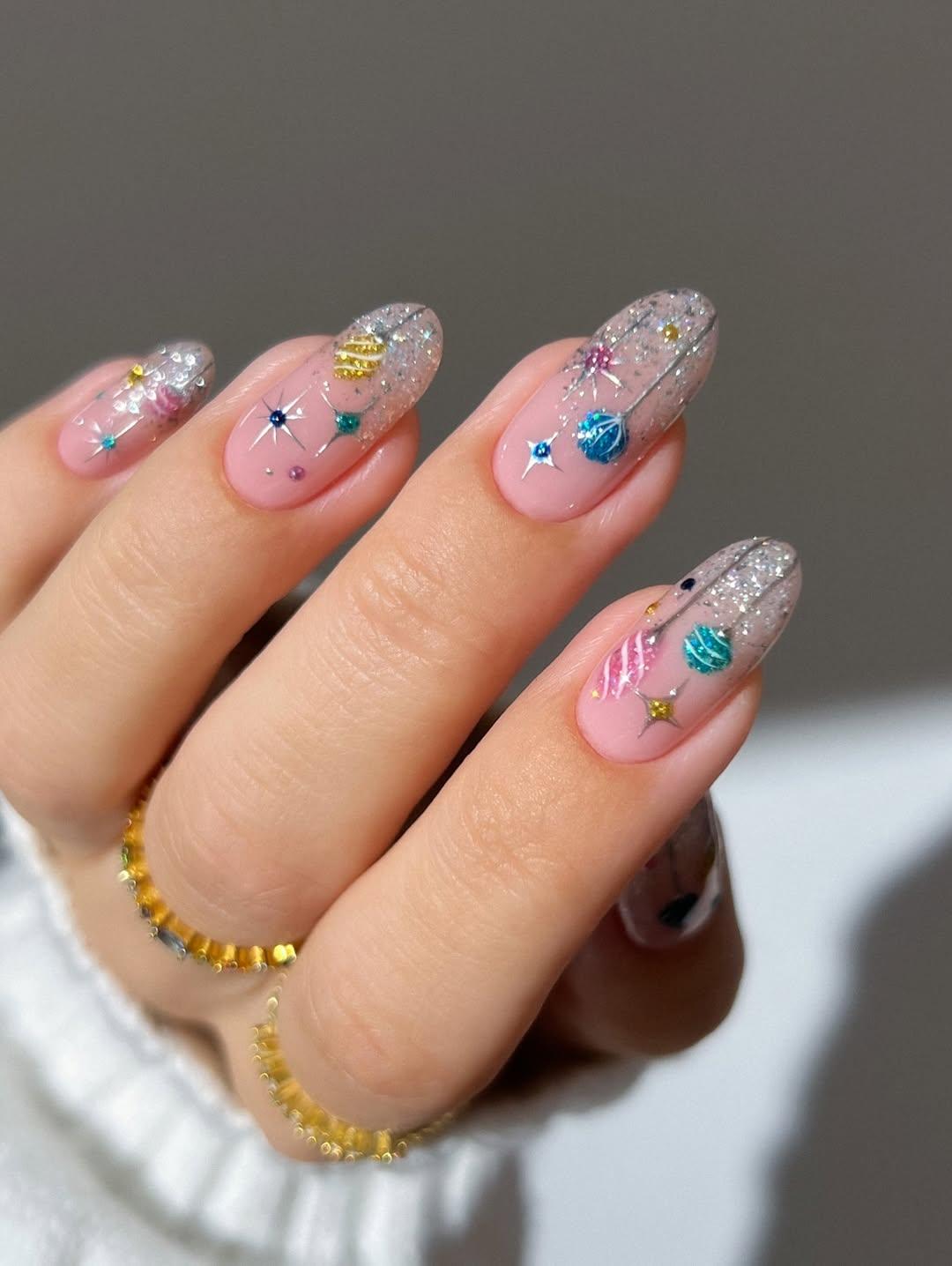Если ты ищешь маникюр, который с первого же взгляда создает праздничное настроение, то дизайн ногтей с рисунком елочных игрушек станет идеальным для тебя вариантом. Он работает как маленькая, но при этом эффектная деталь, которая мгновенно создает праздничное настроение и новогоднюю атмосферу.