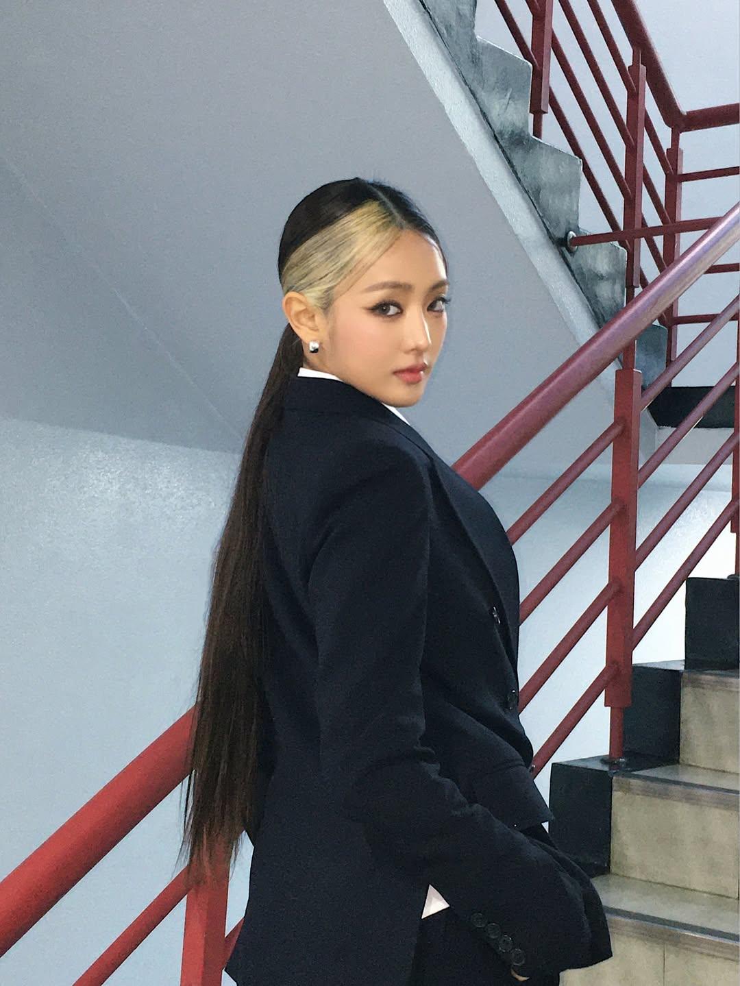 Когда речь заходит об универсальных образах, которые одинаково классно выглядят и в повседневной жизни, и на вечеринке, я сразу вспоминаю Минни из i-dle. Она умеет играть с настроением так же круто, как с музыкой: сегодня — строгая и собранная, завтра — романтичная с кудрями, послезавтра — милашка с бантиками.