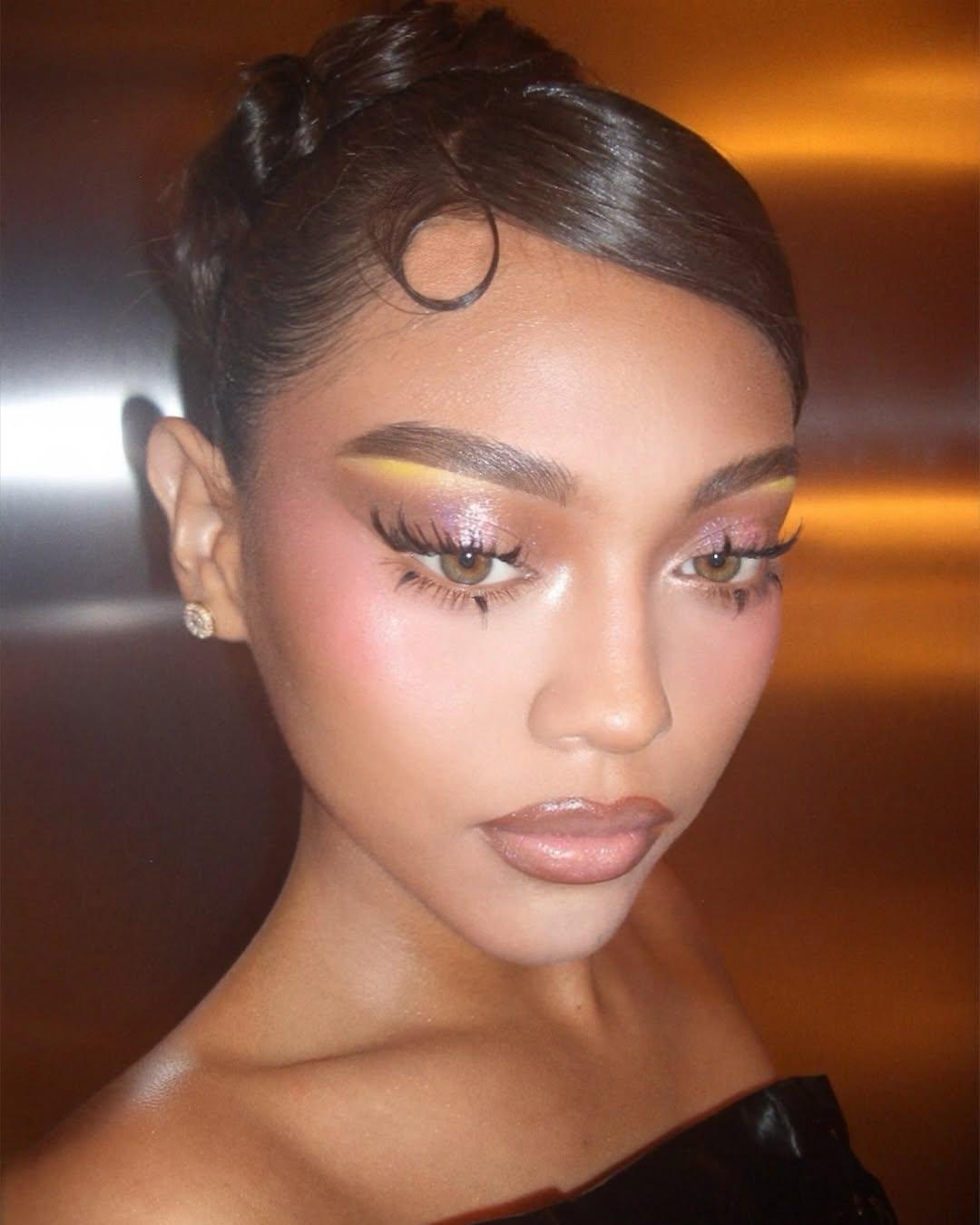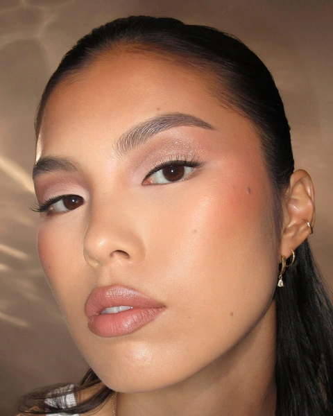 С приходом эстетики clean girl мы зациклились на едва уловимом сиянии: естественность была превыше всего. В новом году все будет немного иначе. Конечно, купаться в хайлайтере мы не будем, но наносить самый яркий из них планируем. Советую наносить люминайзер на выступающие части лица: скулы, спинку носа, а также не забывать про веки, на которых шиммер выглядит просто потрясающе. Жемчужный, розовый или фиолетовый — выбирать тебе!