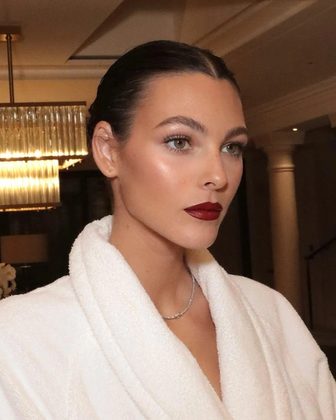 Мы привыкли нюдовым оттенкам также, как и к отсутствию тонального средства на лице. Визажисты решили внести коррективы и снова включить в нашу привычную бьюти-рутину яркие помады. Например, винную: как давно ты пользовалась ей, не считая время, когда на волне популярности был образ Нуры из сериала «Скам»? Пора возвращать давно забытое прошлое — акцентные губы больше не нуждаются в поводе! Главное, не нагружать макияж другими элементами: темными тенями или излишним контурингом.