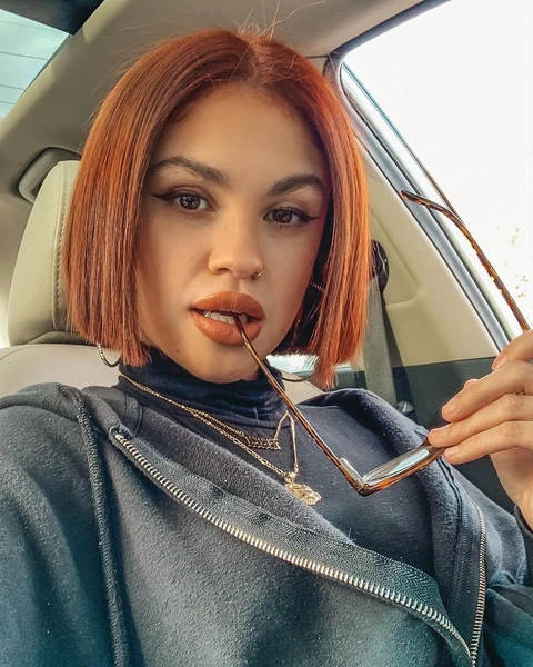 Рыжий цвет добавляет тепла и энергии строгой геометрии японского боба. Стрижка остается структурированной, но перестает быть слишком серьезной. Рыжий боб — это баланс между дисциплиной формы и игривостью цвета.
