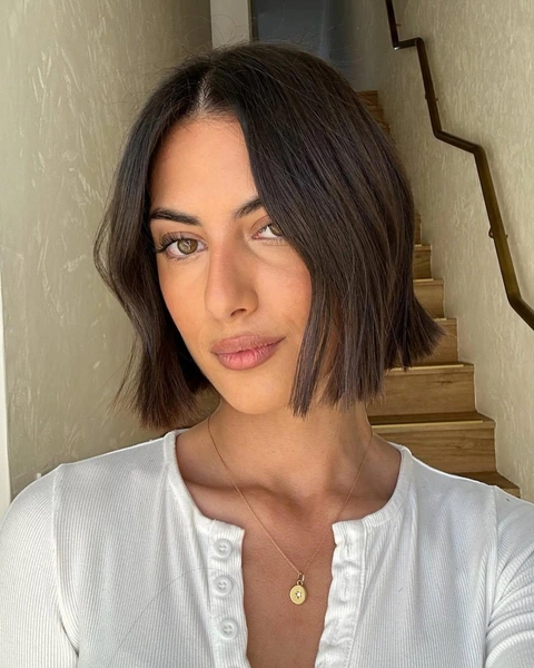 Укладка элементарна: раздели влажные волосы ровным пробором посередине и высуши, направляя пряди вниз. Можешь использовать утюжок для дополнительной гладкости, но это опционально. Японский боб с прямым пробором держится сам, особенно если волосы прямые от природы.