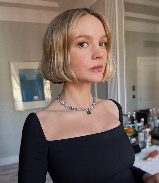 Кэри Маллиган тоже носит вполне классическую стрижку, но укладывает ее немного иначе. Если Сиара выбрала абсолютно прямые волосы, чуть прилегающие к лицу у кончиков, то эта звезда добавляет немного текстуры. Легкая волна позволяет красивому золотистому окрашиванию переливаться под светом.