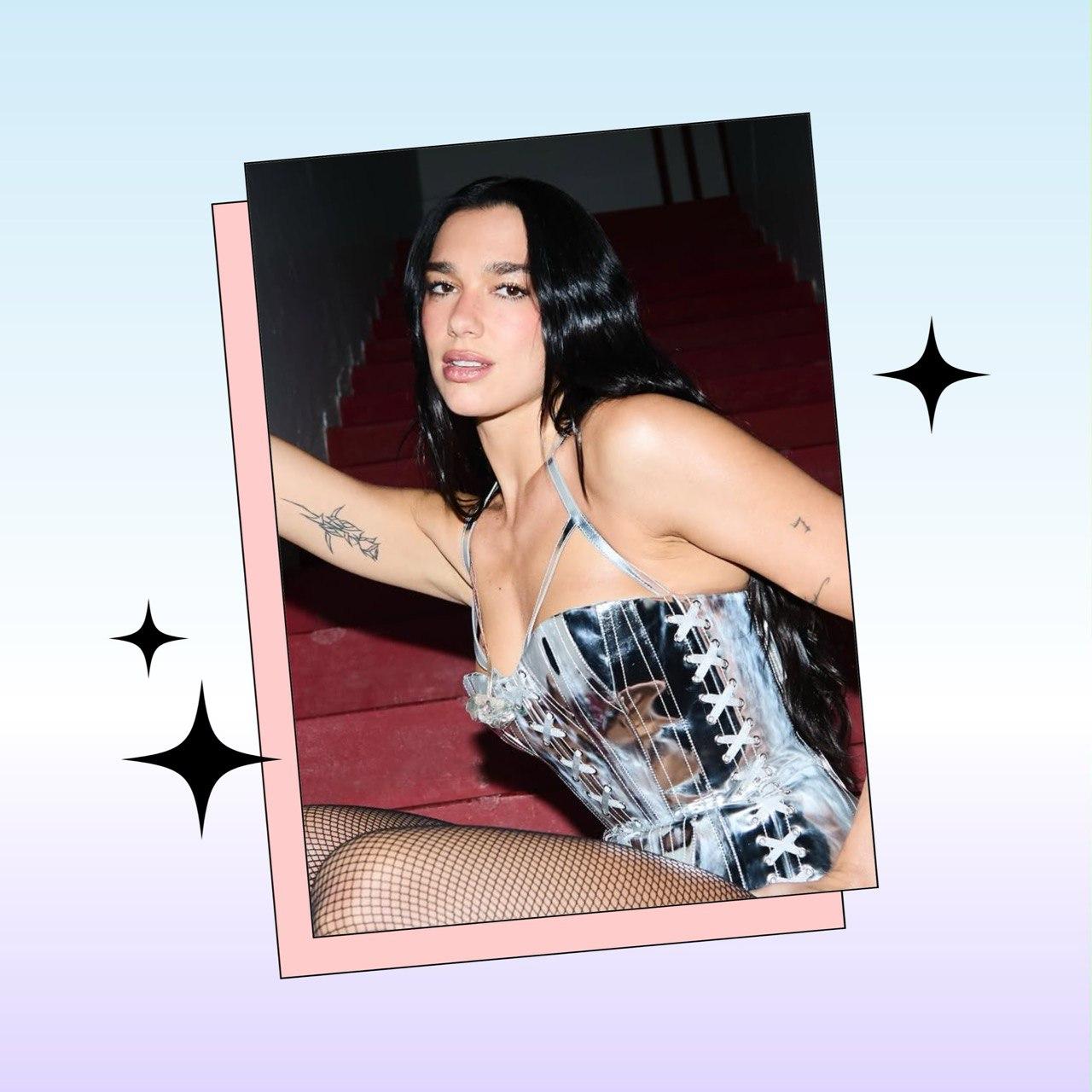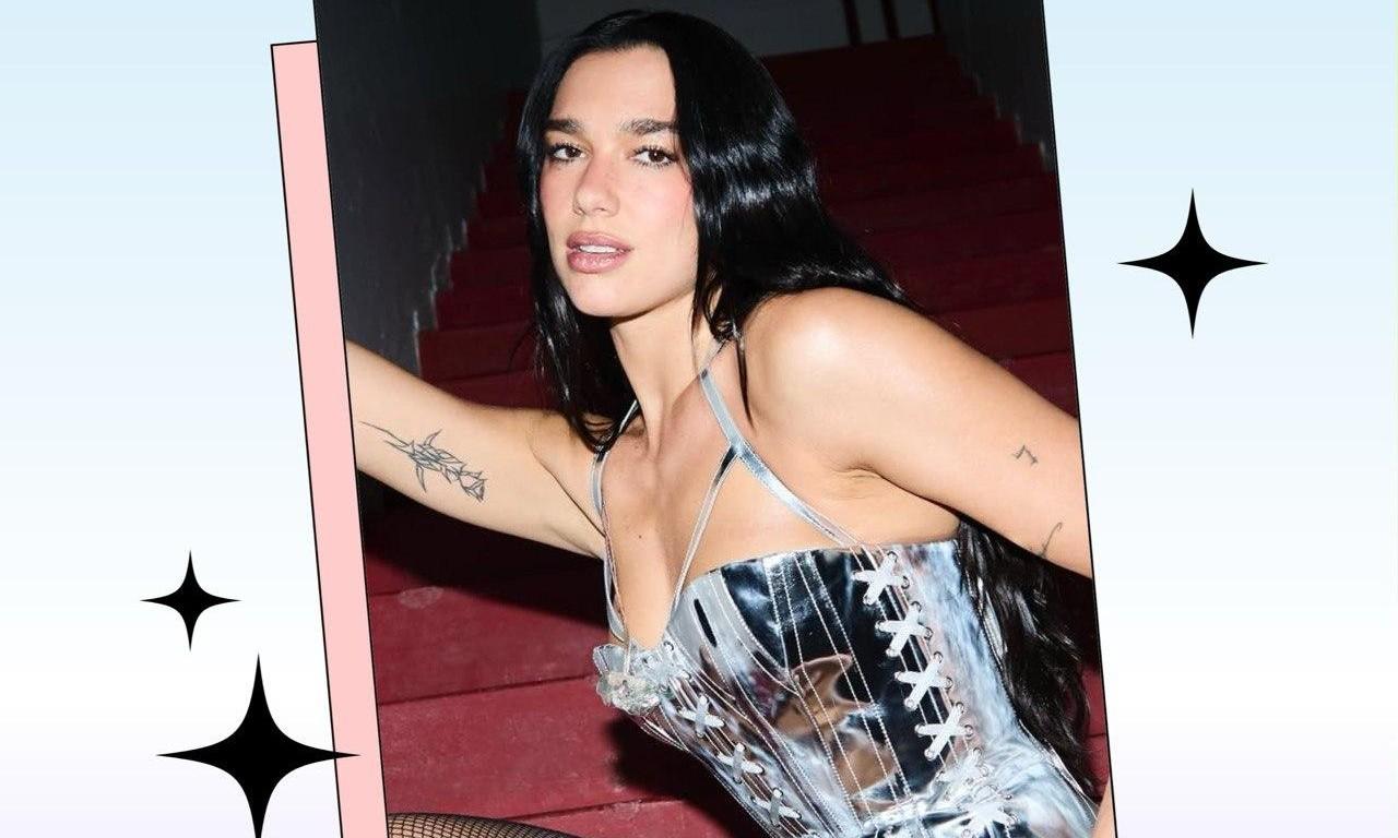 Золотистый дизайн красиво перекликается с нарядом певицы. Дуа Липа выбрала его для сценического образа в серебряном цвете. Она надела боди с корсетом из зеркального материала, сетчатые колготки и высокие лакированные сапоги. Образ чем-то напоминает гламурную эстетику нулевых, но при этом в нем есть элементы футуризма и сексуальности, как и во всех других луках певицы на концертах.