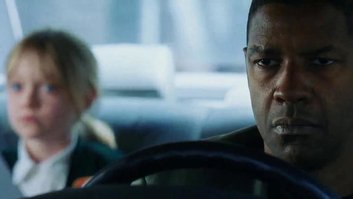 Дензел Вашингтон в роли Джона Кризи с юной Дакотой Фаннинг в образе Питы Рамос