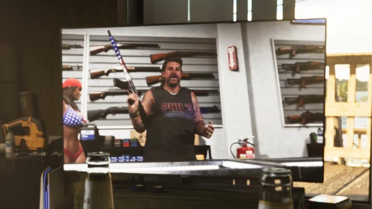 Да, эта пасхалка немного рушит теорию о разных вселенных, но, тем не менее, она есть. В трейлере к GTA 6 можно увидеть рекламу оружейного магазина Phil's Ammu-nation. И самое примечательное то, что главных действующим лицом в рекламном ролике стал… Фил Кэссиди.