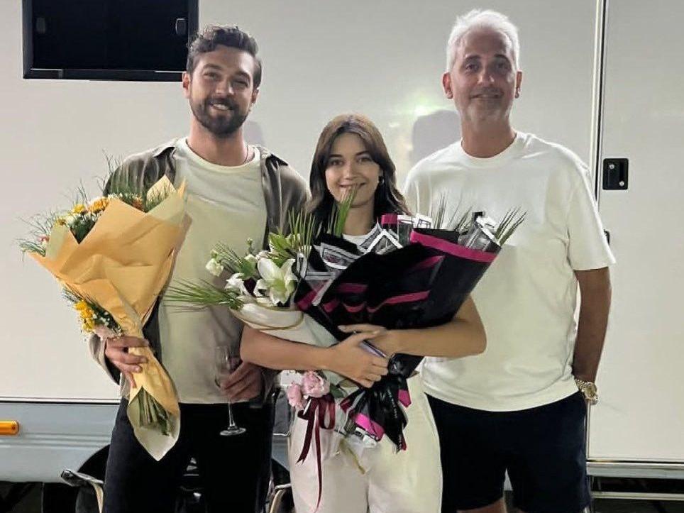 Фуркан Андыч и Афра Сарачоглу на съемочной площадке сериала «Пера»